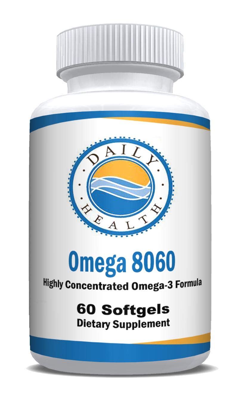 Omega-3 Fish Oil Exclusively manufactured for Daily Health Made in the USA in a FDA Registered Lab under strict GMP guidelines. Moleculary Distilled for Purity Mercury Free PCB Free Highly concentrated Omega 3 formula. Omega 3 Fish Oil Omega 8060 Fish Oil 2400, Omega 3 1440mg, EPA 864mg, DHA 576mg, No Aftertaste Natural Lemon Flavor. Fish Oil Joint Brain Heart Health Support - Third Party Tested. Omega 8060 Fish Oil 60 gel caps btl 1 Months Supply.