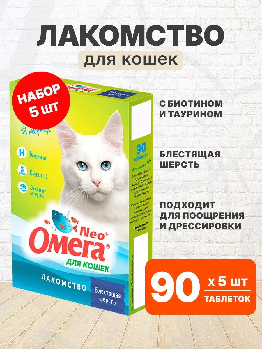 Омега Neo+ — вкусное и полезное лакомство для поощрения, баловства и поддержания естественной красоты шерсти кошек.