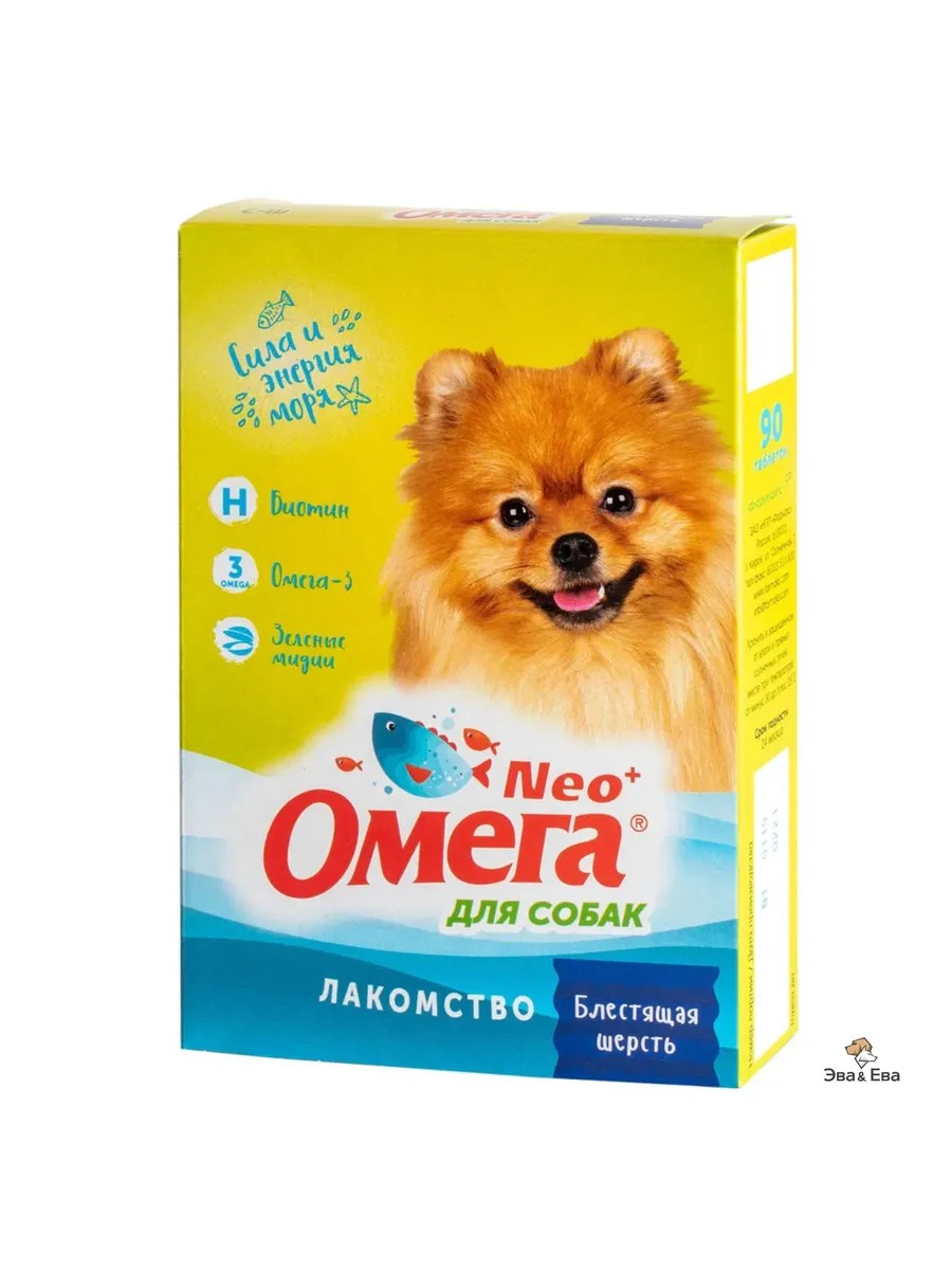 Омега Neo+ Блестящая шерсть для собак - мультивитаминное лакомство для поощрения, баловства и поддержания естественной красоты шерсти кошек. Витамины Омега Нео плюс - идеальный выбор. Добавляйте в рацион своих питомцев и наблюдайте, как они становятся более активными и здоровыми!. Небольшой размер таблеток витаминизированного лакомства делает Омега Нео прекрасным вариантом для дрессировки. Не содержит сахара, соли, глютена, красителей и искусственных ароматизаторов. Упаковка в азотной среде позволяет сохранить привлекательный вкус и запах лакомства.· Омега-3 кислоты поддерживают иммунитет и улучшают состояние кожи и шерсти;·