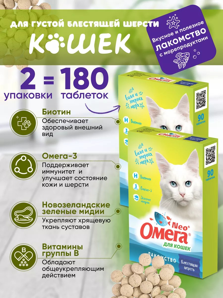 Омега Neo+ Витамины для кошек Омега 3 улучшение качества блеска шерсти