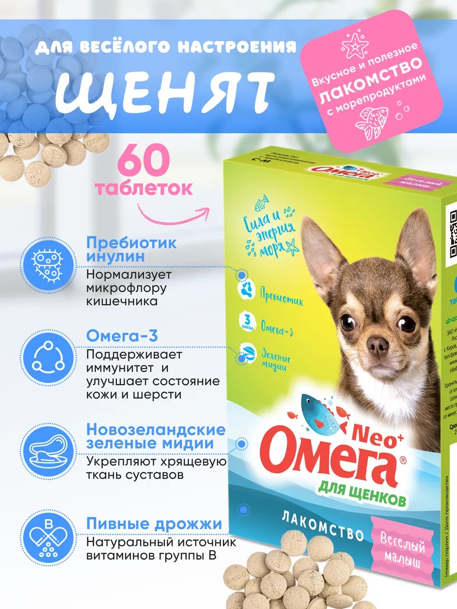 Витамины должны присутствовать в рационе каждого домашнего животного. Витамины для собак "Омега Neo+" представляют собой комплексное ветаптечное средство, разработанное специально для укрепления здоровья и иммунитета вашего питомца. Лакомство для собак, в составе которого все самое необходимое для крепкого здоровья и сильного иммунитета. Эти витамины содержат ценные компоненты, такие как пребиотик инулин, нормализующий микрофлору кишечника, витамины группы В, обладающие общеукрепляющим действием, Омега-3 кислоты, не вырабатывающиеся в организме щенков и так необходимые для поддержания иммунитета и улучшения состояния кожи и шерсти. Кроме того, добавление сухого обезжиренного молока, лактозы и натуральной вкусовой добавки делает эти витамины не только полезными, но и приятными к употреблению для вашего любимца. 100% пользы в каждой таблетке.