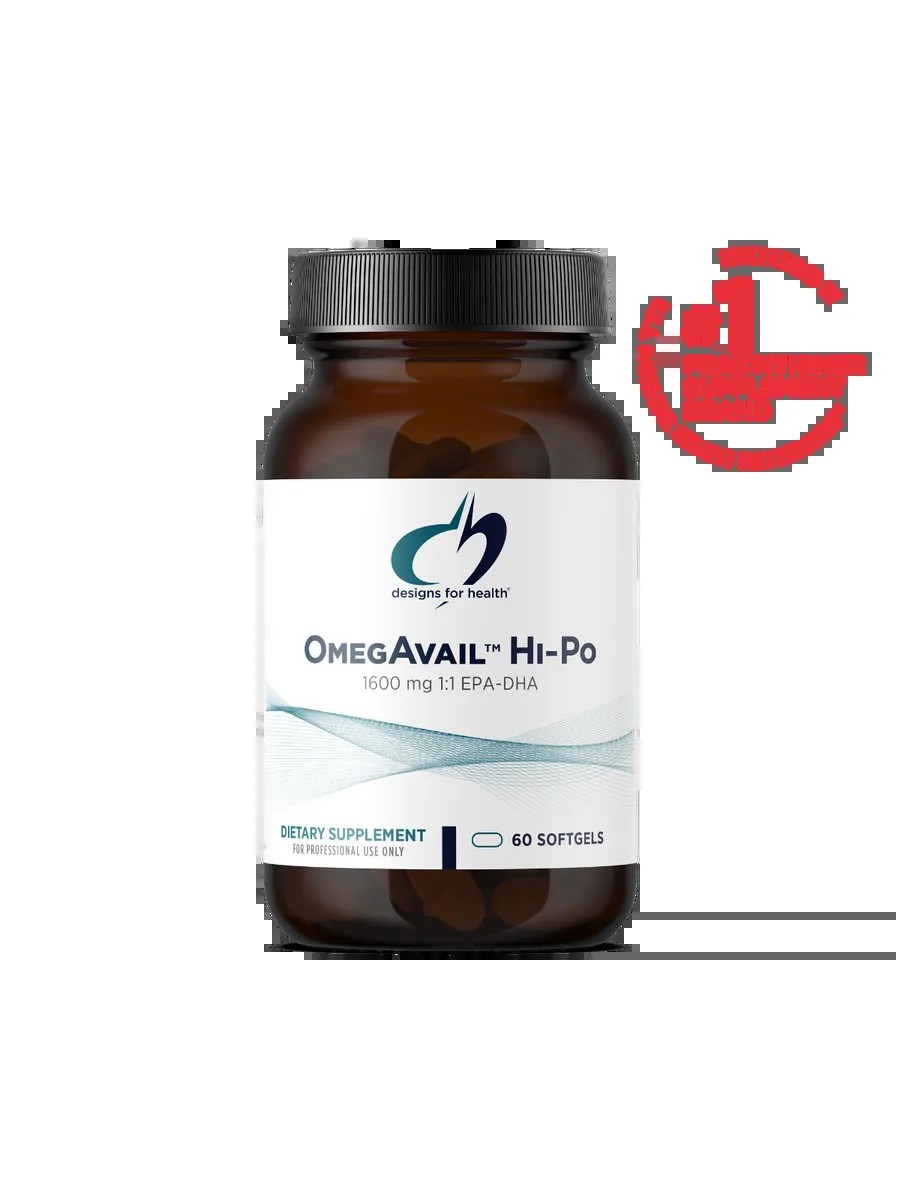 OmegAvail Hi-Po is our highest-concentration omega-3 product, delivering 1,600 mg of eicosapentaenoic acid/docosahexaenoic acid (EPA/DHA) per 2-softgel serving in a balanced 1:1 ratio.