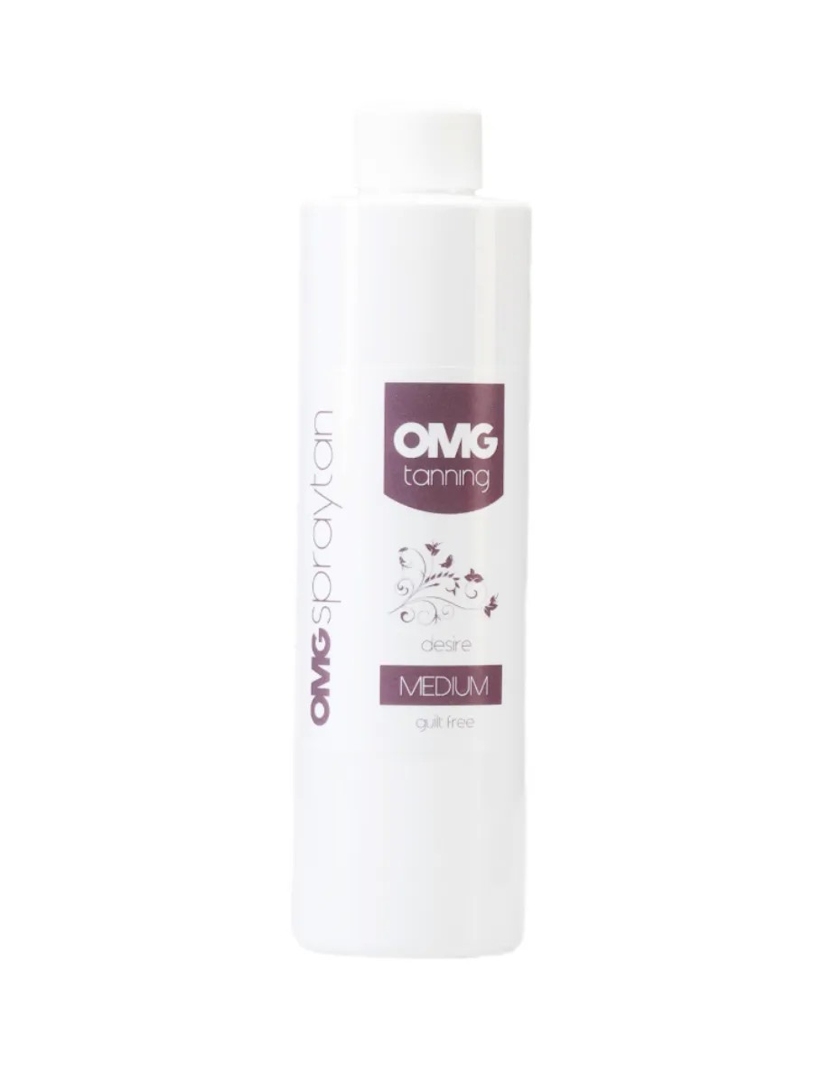 A 250 ml sample of OMG Desire Medium Instant Tanning Lotion with 10% DHA.