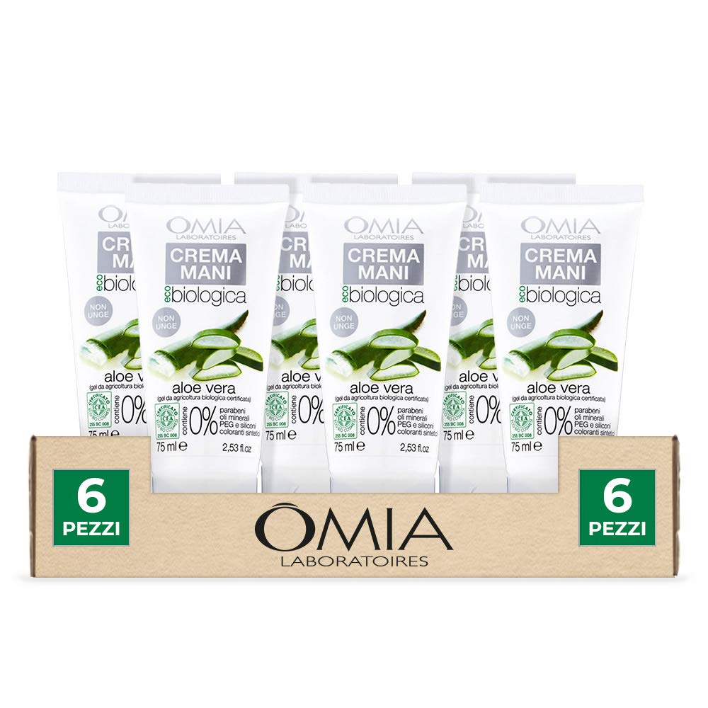 The ecological aloe vera hand cream is a regenerating and protective treatment for the hands based on aloe barbadensis miller gel made of certified organic cultivation and is extracted with mechanical methods without using chemical solvents.The aloe vera contained in this cream gives the product moisturizing and strengthening properties.Used regularly, protects your hands and soft thanks to the effect of a selected mixture of natural substances such as corn starch, shea butter, sweet almond oil, all ingredients from organic cultivation that give the product considerable protective skills.This hand cream has a nourishing and protective effect on dry and sensitive hands, gives a pleasant feeling of protection and relief and leaves the skin soft and velvety.ICEA-certified eco-formula, quickly retracting plasticizer.The product is dermatologically tested.Does not contain silicones, pegs, mineral oils and synthetic dyes that make it skin -friendly.The ingredients used in the formula are mild and predominantly natural origin.The product is dermatologically tested and nickel cobalt and chromium values 0.0001tested: ICEA-certified eco-formula, without silicones, PEG and synthetic dyes.The product is dermatologically tested.Results: nourishing and protecting for dry and sensitive hands, gives a pleasant feeling of protection and relief, leaves the skin soft and velvety, absorb quickly without greg.Action: Aloe Vera comes exclusively from controlled organic cultivation and is obtained without chemical solvents, it gives the preparation pronounced moisturizing and strengthening properties.Haut type: This hand cream is particularly suitable for people with dry and sensitive hands.Formul: OMIA BIO-HANDREME ECO is a regenerating and protective treatment for the hands based on Aloe Barbadensis Miller Gel made of certified organic cultivation.Die ökologische Aloe Vera Handcreme ist eine regenerierende und schützende Behandlung für die Hände auf Basis von Aloe Barbadensis Miller Gel aus zertifiziertem biologischem Anbau und wird mit mechanischen Methoden ohne Verwendung chemischer Lösungsmittel extrahiert. Die in dieser Creme enthaltene Aloe Vera verleiht dem Produkt feuchtigkeitsspendende und stärkende Eigenschaften. Regelmäßig verwendet, schützt Ihre Hände und weich dank der Wirkung einer ausgewählten Mischung aus natürlichen Substanzen wie Maisstärke, Sheabutter, Süßmandelöl, alle Zutaten aus biologischem Anbau, die dem Produkt erhebliche Schutzfähigkeiten verleihen. Diese Handcreme wirkt pflegend und schützend für trockene und empfindliche Hände, gibt ein angenehmes Gefühl von Schutz und Erleichterung und hinterlässt die Haut weich und samtig. ICEA-zertifizierte Öko-Formel, schnell einziehender Weichmacher. Das Produkt ist dermatologisch getestet. Enthält keine Silikone, PEGs, Mineralöle und synthetische Farbstoffe, die es hautfreundlich machen. Die in der Formel verwendeten Inhaltsstoffe sind mild und überwiegend natürlichen Ursprungs. Das Produkt ist dermatologisch getestet und Nickel-Kobalt und Chromwerte 0,0001GEPRÜFT: ICEA-zertifizierte Öko-Formel, ohne Silikone, PEG und synthetische Farbstoffe. Das Produkt ist dermatologisch getestet. Ergebnisse: Pflegend und schützend für trockene und empfindliche Hände, gibt ein angenehmes Gefühl von Schutz und Erleichterung, hinterlässt die Haut weich und samtig, zieht schnell ein, ohne zu fetten. AKTION: Aloe Vera stammt ausschließlich aus kontrolliert biologischem Anbau und wird ohne chemische Lösungsmittel gewonnen, sie verleiht der Zubereitung ausgeprägte feuchtigkeitsspendende und stärkende Eigenschaften. HAUTTYP: Diese Handcreme ist besonders geeignet für Menschen mit trockenen und empfindlichen Händen. FORMUL: Omia Bio-Handcreme Eco ist eine regenerierende und schützende Behandlung für die Hände auf Basis von Aloe Barbadensis Miller Gel aus zertifiziertem biologischem Anbau.Omia, Ecobio Aloe Vera Handcreme, pflegende und schützende Creme für trockene und empfindliche Hände - Dermatologisch getestet, ohne SLES und PEG, 6 Stück à 75 ml Alte Formel