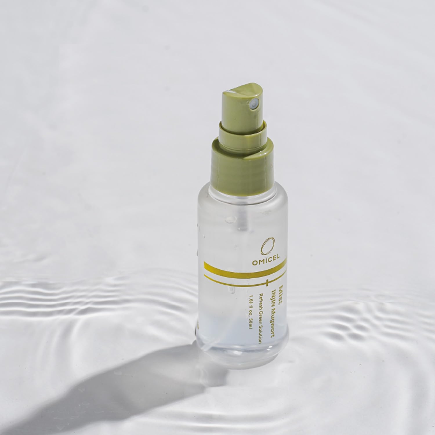OMICEL INJIN Mugwort Green Solution Mist (1 Count) - Hydrating Facial Toner Spray for Dewy Glowing Skin | Moisturizing Makeup Setting Mist | Hemp Stem Extract Bifida Ferment Lysate