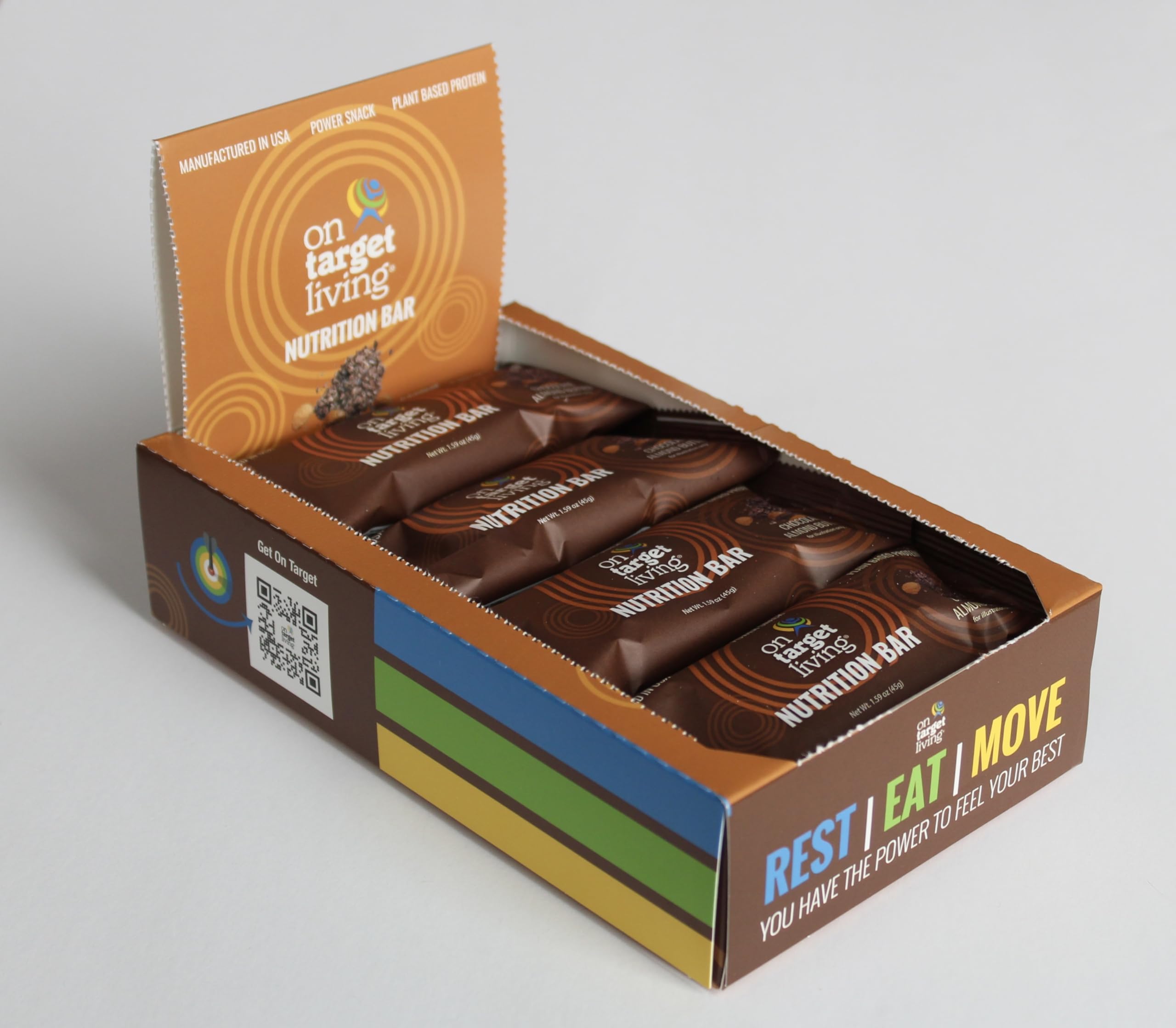 On Target Living Chocolate Almond Butter Nutrition Bar - Healthy Snack with Almonds Dates Honey Dark Chocolate and Superfoods - 12-Pack