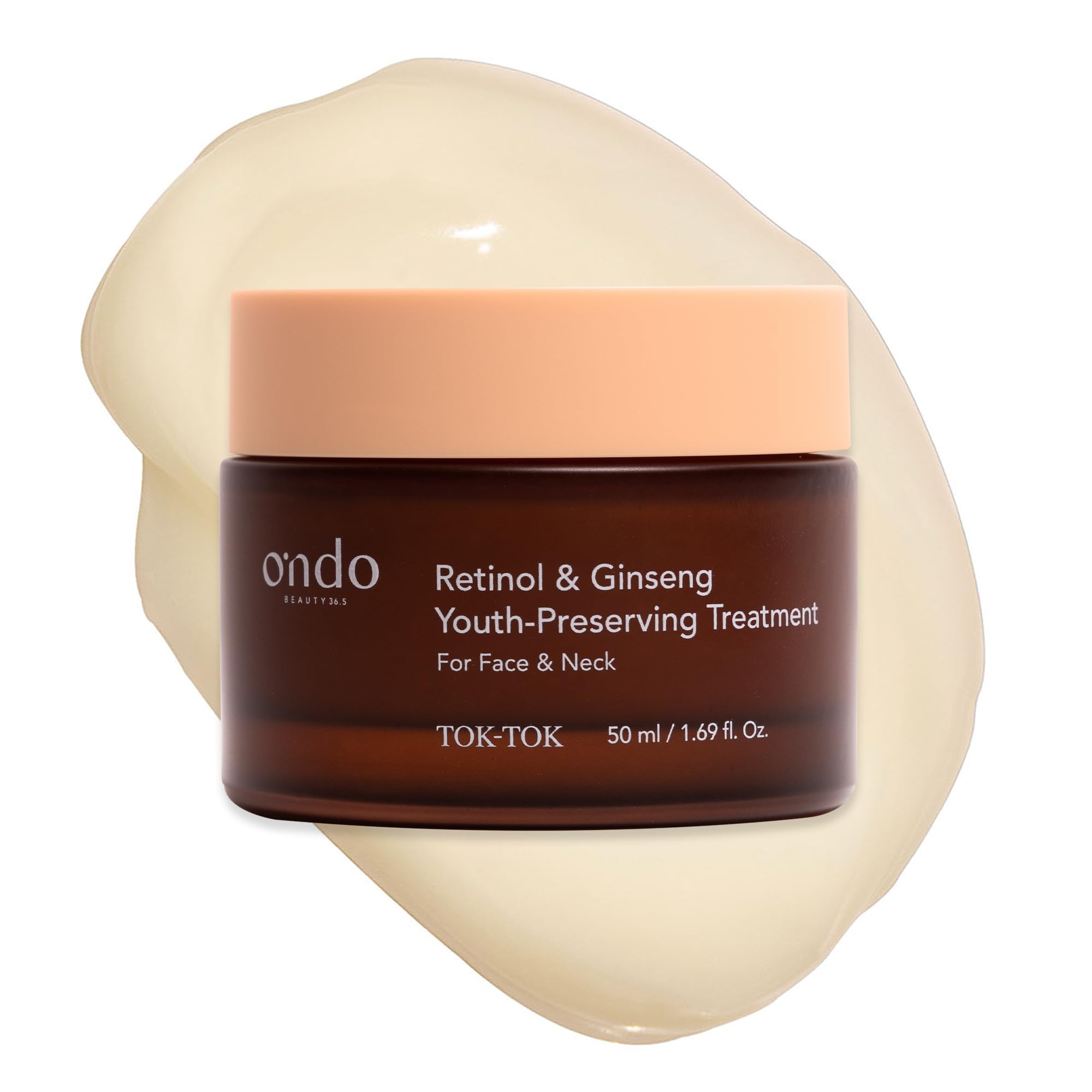 Subtle fragrance and soft texture: Floral and woody notes with a natural tint thanks to retinol and turmeric, without staining clothes or pillows. Radiance and even skin tone: Enriched with niacinamide and ginseng extract to diminish dark spots, soothe skin, and brighten the complexion. Intense hydration and nourishment: 3 shea butter, hyaluronic acid, and ceramides to deeply hydrate, strengthen the skin barrier, and protect the skin. Effective retinol: 0.05 retinol to stimulate natural collagen production and reveal smooth, firmer skin. Powerful anti-aging complex: Contains 2 peptides to improve skin firmness and reduce wrinkles.Parfum subtil et texture douce : Notes florales et boisées avec une teinte naturelle due au rétinol et au curcuma, sans taches sur vêtements ou oreiller. Éclat et uniformité du teint : Enrichie en niacinamide et extrait de ginseng, pour atténuer les taches, apaiser la peau et illuminer le teint. Hydratation et nutrition intenses : Beurre de karité à 3 , acide hyaluronique et céramides pour hydrater en profondeur, renforcer la barrière cutanée et protéger la peau. Rétinol efficace : 0,05 de rétinol pour stimuler la production naturelle de collagène et révéler une peau lisse et raffermie. Puissant complexe anti-âge : Contient 2 de peptides pour améliorer la fermeté de la peau et réduire les rides.Ondo Beauty 36.5 - Retinol Ginseng Youth Preserving Treatment - Traitement préventif anti-âge au rétinol et au ginseng, 50ml