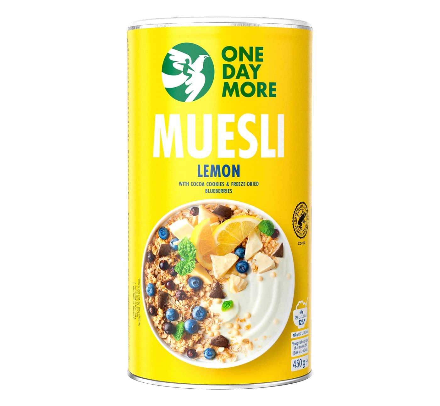 One Day More Muesli Lemon 450 g Nutritious breakfast for energy Crunchy Natural sweetness Perfect to start