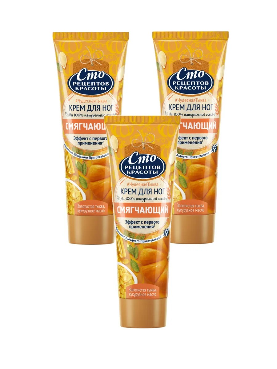 | Полное наименование товара | Сто Рецептов Красоты крем для ног Смягчающий с тыквой и кукурузным маслом, интенсивное питание 80мл х 3шт |