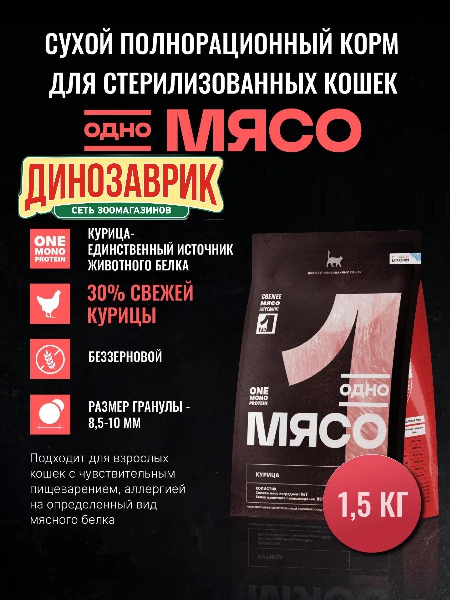 Сухой полнорационный корм ОДНО МЯСО для стерилизованных кошек, с мясом курицы 1,5 кг