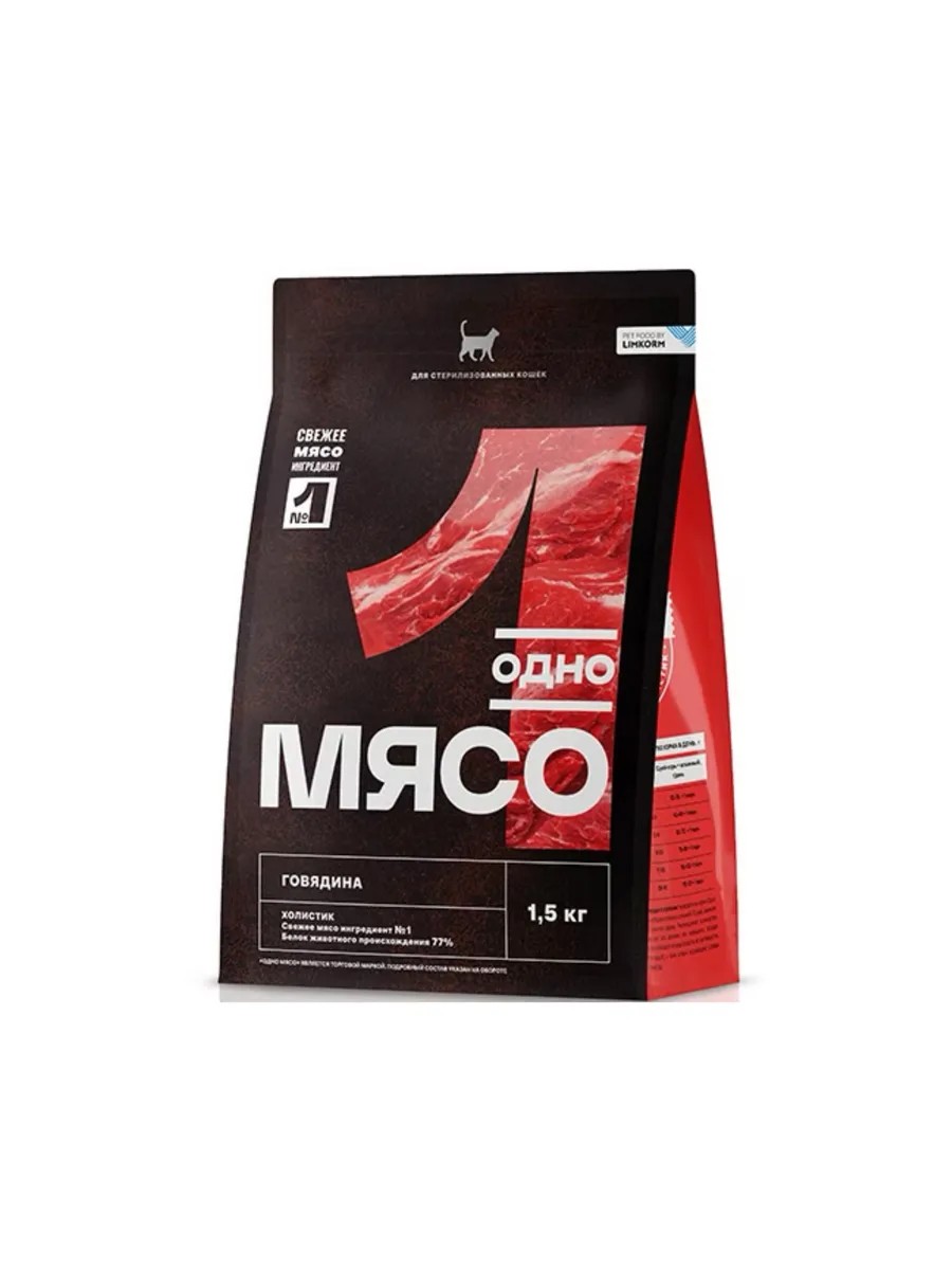 Одно Мясо, Сухой корм для стерилизованных кошек с говядиной 1,5 кг.