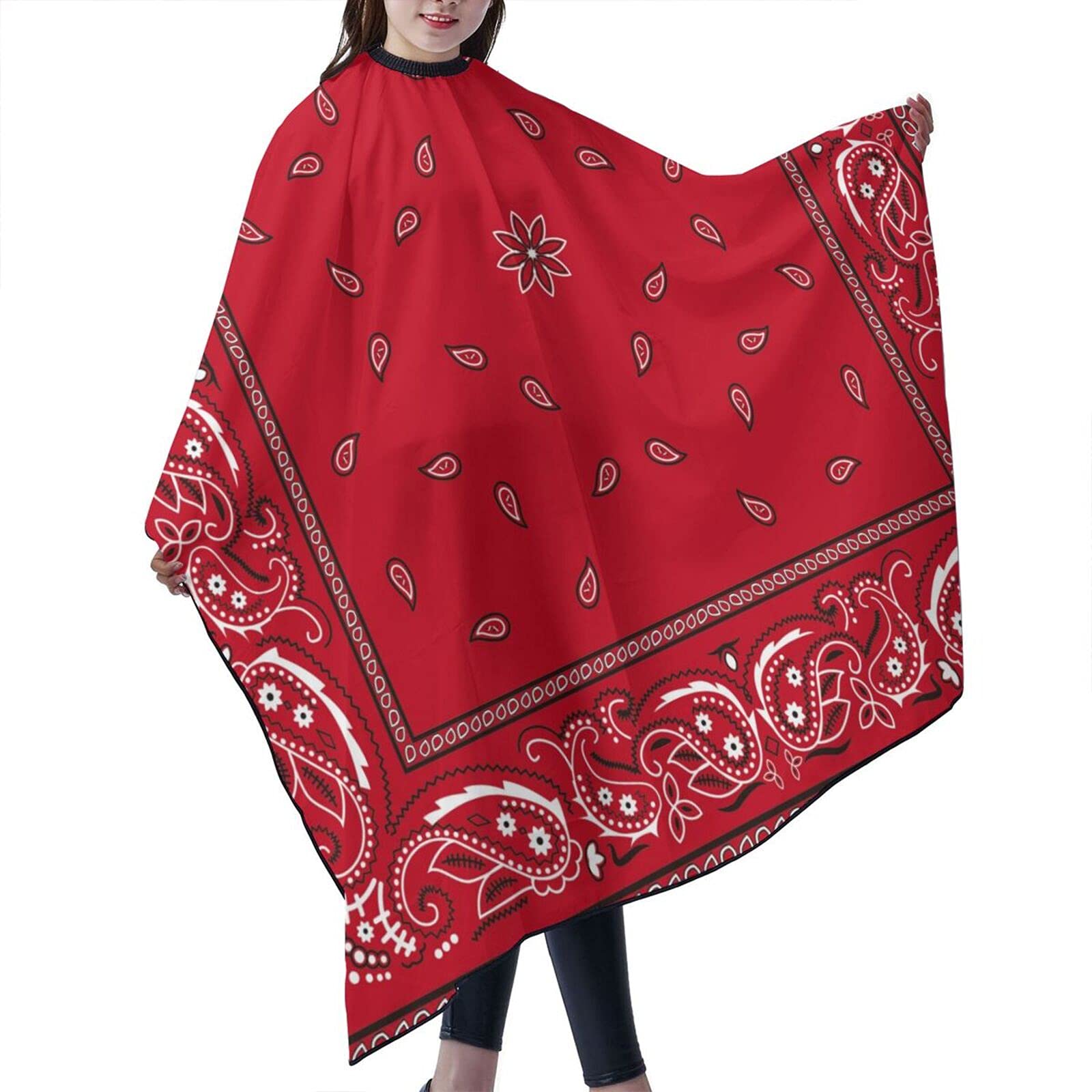 Widely Use: Bandanas Paisley Black Red White Barber Cape Hair Cutting Cape for Adults&Kids,Professional Haircut Salon Cape with Adjustable Snap Closure for Haircuts,Hair Cutting,Makeup,Hair Dye. Great Barber Cape for Hair Stylist,Hairstylists,Hairdresser Styling & Home Salon and Barbershop.It'S a Must-Have Item for Every Barbershop & Home Salon. Reuseable & Easy to Clean: Environmentally Friendly and Reusable. After Use of This Hairdressing Set, it Can Be Washed Directly Or Wiped to Clean and Use Again, Economy and Environmentally Friendly. One Size Fits Most : Our Bandanas Paisley Black Red White Hairdressing Gown Barbers Capes. Size: W55.1 X L66.1 Inches (Laying Flat). This Barber Cape Is Large Enough to Ensure a Full Coverage.Flexible and Long Enough to Meet Demand of Most People. Adjustable Snap Closure :Our Bandanas Paisley Black Red White Hair Cutting Cape Fits Any Neck Size by Adjusting with Adjustable Snap Closures. Hair Cutting Cape Includes Sewn-In Loop for Hanging, the Neckline Fits to the Neck Perfectly and Can Prevent Hair From Falling into and Make You Comfortable and Enjoying While Hair Cutting. Premium Quality : Adapt with Waterproof Fabric,Our Bandanas Paisley Black Red White Hairdresser Cutting Cape Adapt Is Anti-Wrinkle and Anti-Static.When Cutting Hair, the Hair Will Not Stick to the Cape and Just Take a Light Shot to Fall Naturally.