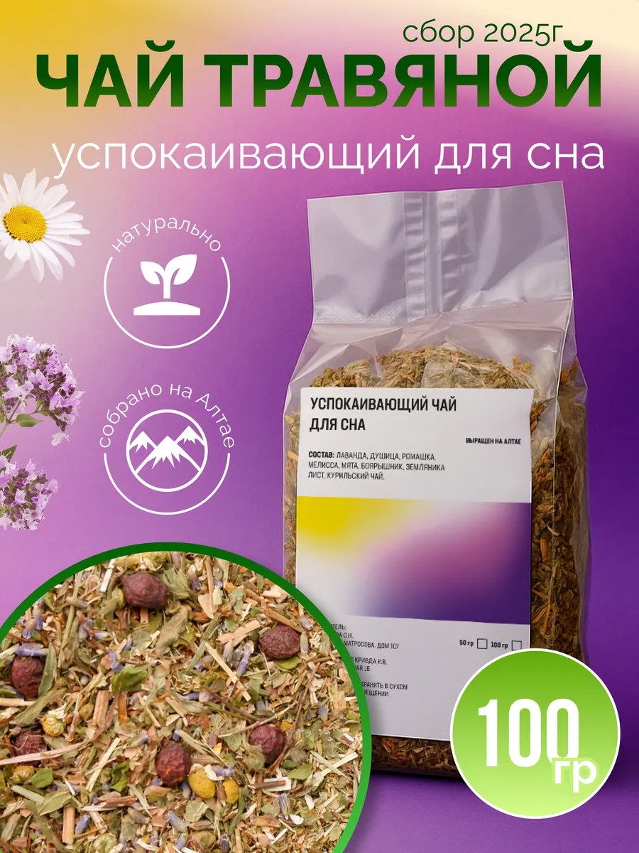Алтай, сбор 2025, 100 г — натуральный травяной сбор без кофеина, созданный для глубокого расслабления и крепкого сна. Мягкий вкус с лёгкими цветочными нотками лаванды, ромашки и мелиссы помогает снять напряжение и создать атмосферу уюта перед сном.