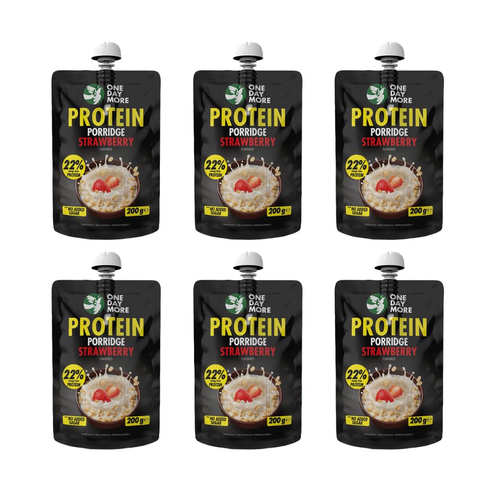 OneDayMore presents a protein porridge with a fruity strawberry flavor - the perfect quick breakfast in a tube! Our porridge contains high-quality whey protein concentrate, which, in combination with fiber, ensures a pleasant feeling of satiety in the morning. With its high protein content and practical 200g tube, it is ideal for on the go, whether at the office, at school, or during sports. And if you're still feeling a little peckish later in the day, we recommend the delicious Apple Vanilla flavor!Other flavor variations: Try the apple vanilla version in the afternoon - always delicious, always nutritious!. Healthy breakfast alternative: Quick and delicious porridge, ideal for anyone who values healthy eating. Handy 200g tube: Ideal to take with you, whether at the office, school or when traveling. High in protein and fiber: Whey protein concentrate and fiber for long-lasting satiety and energy. Delicious strawberry flavor: Fruity porridge with natural strawberry flavor from OneDayMore, perfect for the day. OneDayMore présente une bouillie protéinée au goût fruité de fraise - le petit-déjeuner parfait et rapide en tube ! Notre bouillie contient un concentré de protéines de lactosérum de haute qualité qui, en combinaison avec des fibres, assure une agréable sensation de satiété le matin. Avec sa teneur élevée en protéines et son tube pratique de 200 g, il est idéal pour les déplacements, que ce soit au bureau, à l'école ou pendant le sport. Et si vous avez encore une petite faim plus tard dans la journée, nous vous recommandons le délicieux parfum Pomme Vanille !Autres variantes de saveurs : Essayez la version pomme vanille l'après-midi - toujours délicieuse, toujours nutritive !. Alternative saine au petit-déjeuner : Porridge rapide et délicieux, idéal pour tous ceux qui apprécient une alimentation saine. Tube pratique de 200 g : Idéal à emporter avec soi, que ce soit au bureau, à l'école ou en voyage. Riche en protéines et en fibres : concentré de protéines de lactosérum et fibres pour une satiété et une énergie durables. Délicieuse saveur de fraise : Porridge fruité à l'arôme naturel de fraise de OneDayMore, parfait pour la journée.