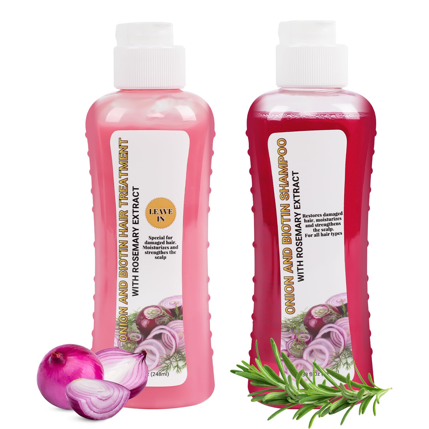 All Hair Types: Our shampoos and conditioners with onion, biotin and rosemary are formulated just for you, whatever your hair type, our sets are not just for curly hair, but for all types of hair. Protecting and Nourishing: Our shampoo not only protects your hair, but also nourishes it with moisturizers rich in antioxidants. Helps to replenish and repair hair, making it rejuvenate and giving hair daily flexibility and elasticity. Thick Hair: This biotin shampoo and conditioner set is specially formulated to clean and condition your hair and scalp. It contains natural ingredients to help you achieve a dense hair appearance. Repair and Moisturize: This shampoo can turn dry hair into smooth and shiny hair. With the benefits of onion, rosemary, and biotin extracts, it can help repair hair and restore vitality, increase hair density, and strengthen the scalp. Natural Ingredients: This shampoo is made with natural ingredients such as onion extract, rosemary and biotin, which can make your hair clean, elastic and plump, and solve the headache of head oil.