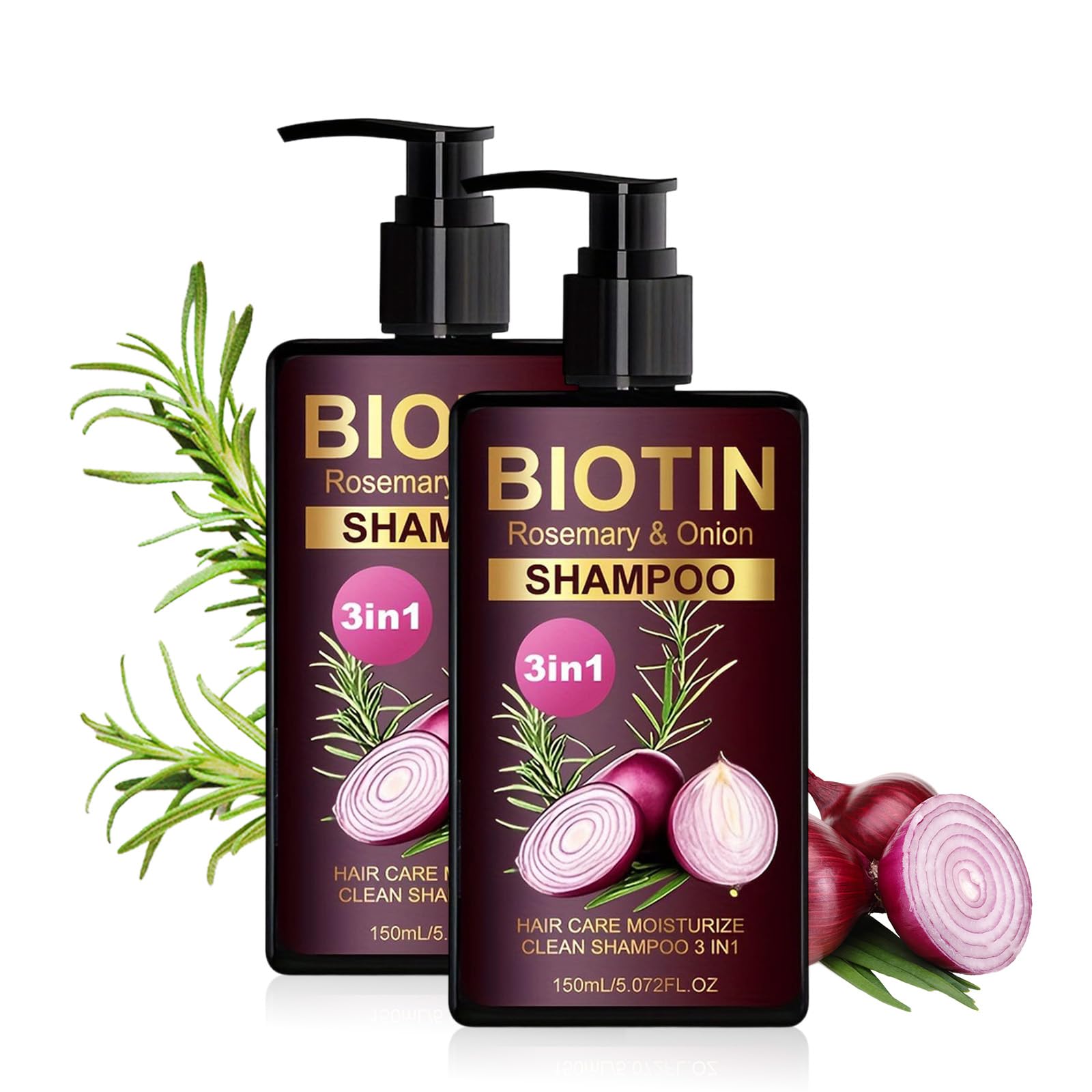 Onion Biotin and Rosemary Shampoo Onion and Rosemary Shampoo for Volumizing & Moisturizing Hair Shampoing 3 en 1 l'oignon et au romarin pour tous types de cheveux rafra chit le cuir chevelu (2pc)