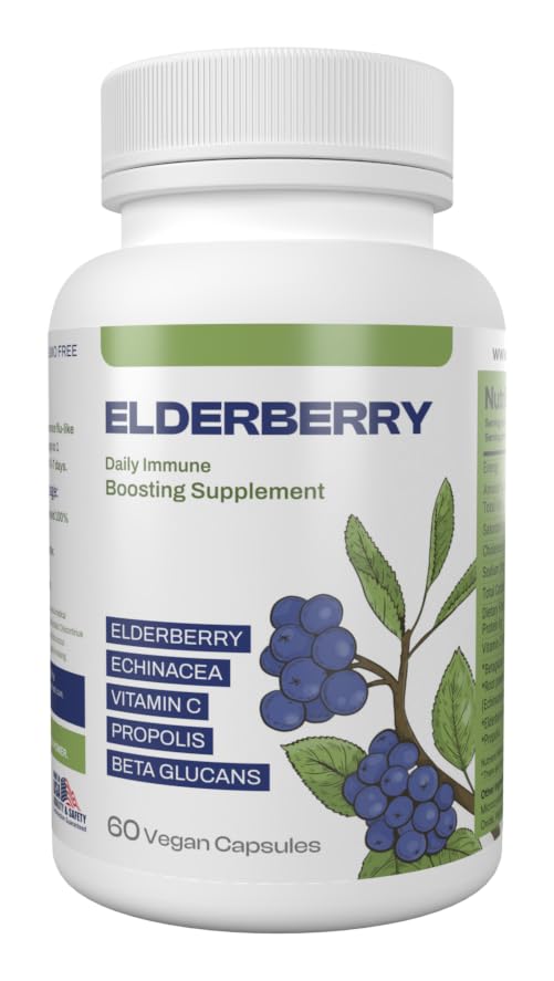 Only Nutri Labs Elderberry Immune Support Supplement Infused with Vitamin C Echinacea Propolis and Beta Glucans Immune Booster Vitamins and Supplements for Adults 60 Vegan Elderberry Capsules