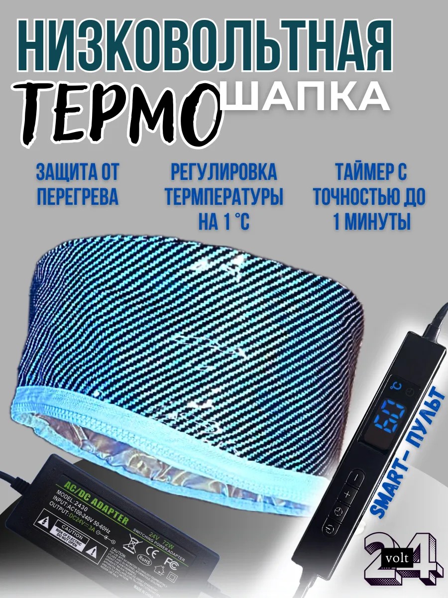 Низковольтная термошапка для волос с напряжением питания всего 24 вольта, это современное и надежное устройство для домашнего ухода за волосам, созданное на основе проверенной конструкции и качественных материалов. Она равномерно и глубоко прогревает волосы и кожу головы, стимулируя раскрытие пор и улучшая проникновение питательных веществ из средств по уходу. Ускоряет питание волос, усиливает кровоснабжение волосяных луковиц, что стимулирует рост и придает объем волосам.