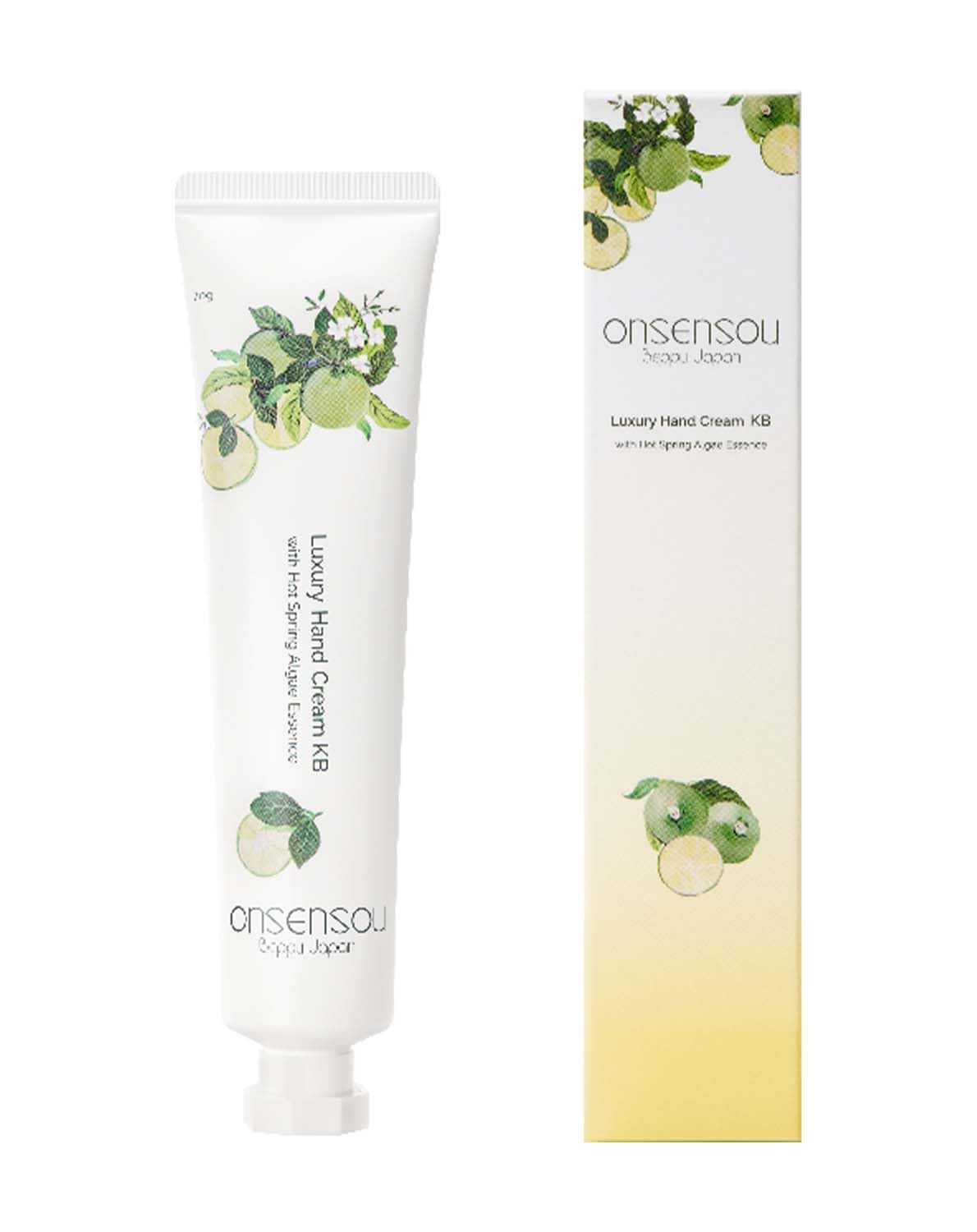 ONSENSOU KABOSU Hand Cream, Net Weight: 70 g 2.46 oz. A luxurious hand cream infused with hot spring minerals. Delivers deep hydration without any stickiness. Experience luxurious hand care with a refined fragrance. SAFETY WARNING Caution Warnings: For external use only. Avoid contact with eyes. If irritation, redness, or discomfort occurs, discontinue use and consult a licensed healthcare practitioner. Avoid direct sunlight, high temperatures, and humidity. Keep out of reach of children.Provides rich moisture to your hands while protecting your skin from dry and irritation caused by housework and fréquent sanitizing. Un moyen facile pour enjoy des soins de haute qualité dans votre vie quotidienne. Perfect for travel, business trips, or as a thoughtful gift. Enjoy the refreshing scent of kabosu, a specialty citrus fruit from Oita, Japan. This citrus-woody fragrance blends the vibrant arôme of kabosu with notes of yuzu and sandalwood, creating a distinctive harmony of crisp citrus and soft, elegant sweetness. [Top notes] : Kabosu, Yuzu [Middle Notes] : Jasmine, Sudachi [Base Notes]: Hinoki (Cypress Japonais), Sandalwood. Texture légère avec une finition non grasse et confortable. Infused with onsen-inspired ingrédients, including hydrolyzed yeast extract, RG92 (green algae extract), and natural hot spring water, to support soft, smooth and healthy skin. A luxurious hand cream formulated with niacinamide, pearl ext, collagen, and hydrolyzed silk. Rich in oleic acid, the shea butter melts into the skin, delivering deep and long-lasting hydration to the hands. ONSENSOU Crème à la main KABOSU, Poids net : 70 g. Une crème luxueuse infusée avec des minéraux de printemps chauds. Delivers Deep hydration without any stickiness. Experience luxurious hand care with a refined fragrance.ONSENSOU Crème à la main KABOSU, Moisturizing Hand Cream, For Dry skin, Smooth, Citrus Woody Scent, Lightweight, Made In Japan, 70g, 2,46 ozDESCRIPTION DU PRODUIT DESCRIPTION DU PRODUIT ONSENSOU Hand Cream KABOSU, Net Weight: 70 g 2,46 oz A luxurious hand cream infused with hot spring minerals. Delivers Deep hydration without any stickiness. Experience luxurious hand care with a refined fragrance. AVERTISSEMENT DE SÉCURITÉ Attention Avertissements : pour une utilisation externe. Avoid contact with eyes. If irritation, redness, or discomfort occurs, discontinue use and consult a licensed health care practitioner. Avoid direct sunlight, high temperature and humidity. Keep out of reach of children. Usage externe uniquement. Évitez tout contact avec les yeux. En cas d'irritation, de rougeur ou d'inconfort, arrêtez l'utilisation et consultez un médecin agréé. Évitez la lumière directe du soleil, les températures et l'humidité élevées et gardez hors de portée des enfants.Provides rich moisture to your hands while protecting your skin from dry and irritation caused by housework and fréquent sanitizing. Un moyen facile pour enjoy des soins de haute qualité dans votre vie quotidienne. Perfect for travel, business trips, or as a thoughtful gift. Enjoy the refreshing scent of kabosu, a specialty citrus fruit from Oita, Japan. This citrus-woody fragrance blends the vibrant arôme of kabosu with notes of yuzu and sandalwood, creating a distinctive harmony of crisp citrus and soft, elegant sweetness. [Top notes] : Kabosu, Yuzu [Middle Notes] : Jasmine, Sudachi [Base Notes]: Hinoki (Cypress Japonais), Sandalwood. Texture légère avec une finition non grasse et confortable. Infused with onsen-inspired ingrédients, including hydrolyzed yeast extract, RG92 (green algae extract), and natural hot spring water, to support soft, smooth and healthy skin. A luxurious hand cream formulated with niacinamide, pearl ext, collagen, and hydrolyzed silk. Rich in oleic acid, the shea butter melts into the skin, delivering deep and long-lasting hydration to the hands. ONSENSOU Crème à la main KABOSU, Poids net : 70 g. Une crème luxueuse infusée avec des minéraux de printemps chauds. Delivers Deep hydration without any stickiness. Experience luxurious hand care with a refined fragrance.