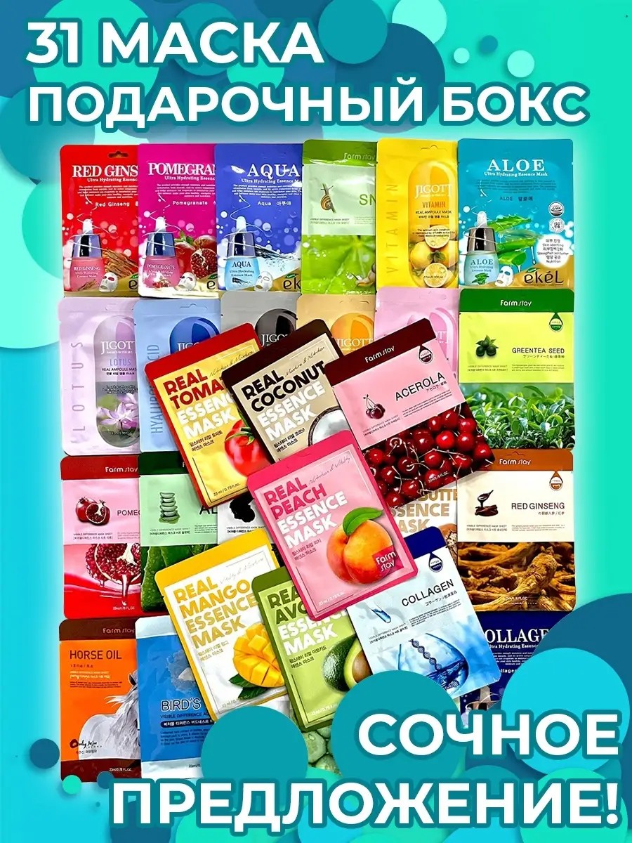 Маски для лица тканевые корейские набор ассорти 31 шт