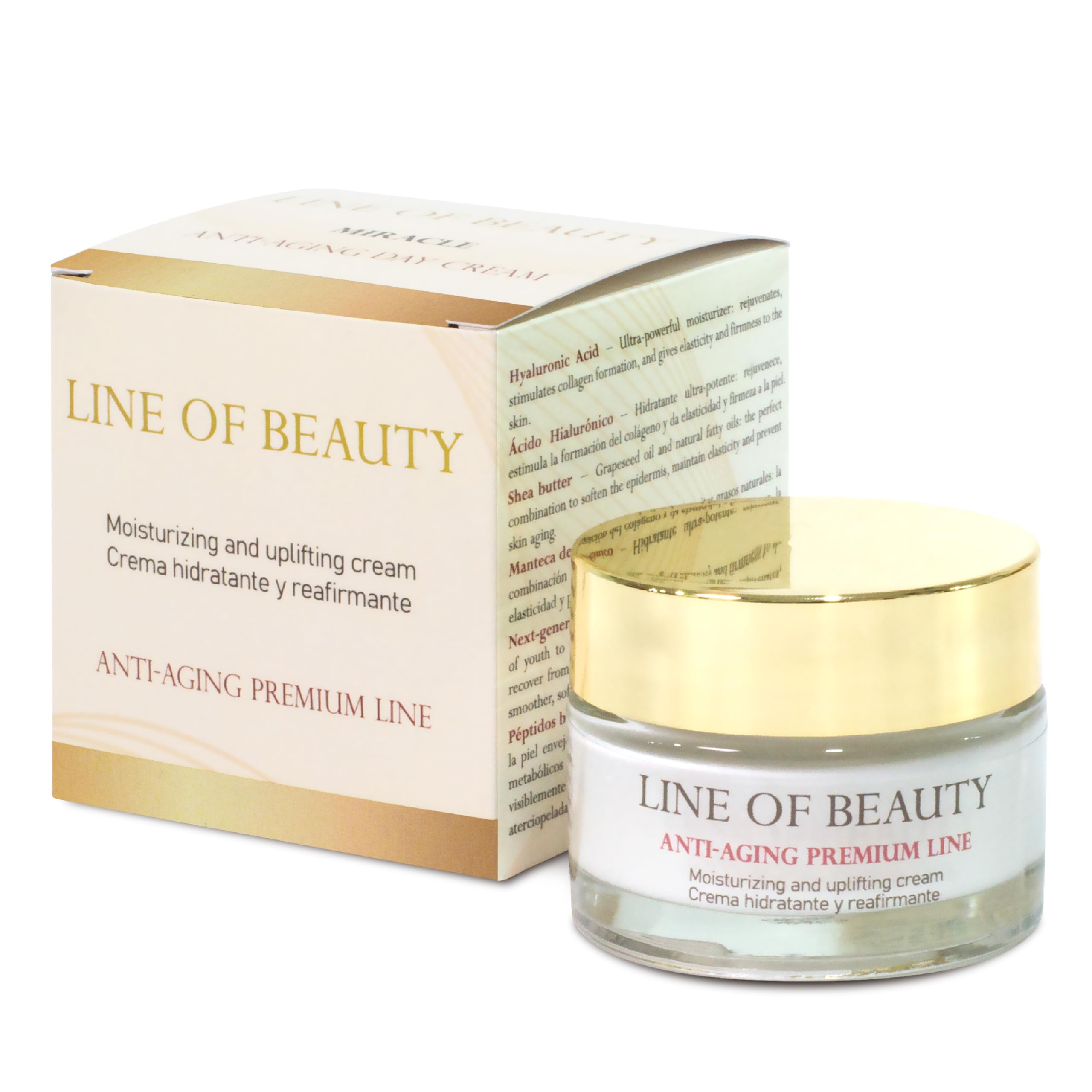 Miracle Cream has an immediate lifting effect and an anti-aging formula: the latest generation Progeline biometric peptide has shown significant positive effects on the signs of aging in two in vivo studies, including reducing the appearance of sagging and loose skin, and improving firmness and elasticity. The cream is easily absorbed and leaves no sticky residue. It reduces fine lines and wrinkles with a wrinkle-smoothing effect, similar to aesthetic treatments. Our hyaluronic acid face cream also helps fill expression lines and wrinkles, giving facial skin a more youthful appearance. It provides a lifting effect that smooths wrinkles and restores firmness. Inspired by wrinkle correction treatments, without needles. Protection against environmental damage: the properties of the face cream include protection against ultraviolet rays that damage the skin and accelerate aging. The active ingredients in this cream create a protective barrier and help retain moisture in the skin, while repairing damage caused by environmental factors. It provides long-lasting hydration, thanks to its hyaluronic acid content, ensuring moisture stays put all day. This cream is suitable for dry, sensitive, combination, and mature skin, and is suitable for all skin types. It is paraben-free and cruelty-free. It does not contain sunscreen. We offer two cosmetic spatulas to facilitate application. INGREDIENTS Aqua, Glycerin, Butyrospermum Parkii Butter, Vitis Vinifera Seed Oil, Glyceryl Stearate, Hydroxyethyl Acrylate Sodium Acryloyldimethyl Taurate Copolymer, Isohexadecane, Phenoxyethanol, Ceteareth-20, Tocopheryl Acetate, Olus Oil, Polysorbate 60, Ceteareth-12, Cetearyl Alcohol, Cetyl Palmitate, Sodium PCA, Parfum, Ethylhexylglycerin, Disodium EDTA, Sorbitan Isostearate, Sodium Hyaluronate, Dextran, Tocopherol, Trifluoroacetyl Tripeptide-2 DIRECTIONS For adults, men and women. SAFETY WARNING For external use only. Avoid contact with eyes. See moreDirections for use: After cleansing the skin in the morning, apply a small amount of cream to the palm of your hand and spread it over the face, neck, and décolleté. Can be applied morning and evening. ANTI-AGING PROTECTION: The ingredients with anti-aging effects regenerate, restore, hydrate, soften, repair, revitalize, and nourish the skin. The skin acquires a renewed appearance and is transformed to achieve a youthful firmness. Helps relax facial micro-tensions, naturally reducing wrinkles. For best results, combine with ONYXLAB's NIAGLOW ELIXIR serum or HYDRALIFT FACIAL SERUM. ? IMMEDIATE LIFTING EFFECT: The latest generation biometric peptide Progeline has shown significant positive effects on the signs of aging in two in vivo studies, including reducing the appearance of sagging and loose skin, and improving firmness and elasticity. Acts as an intensive tightening agent, leaving skin visibly firmer and younger. Ultra-hydrated skin: Hyaluronic acid is the most powerful hydrating component. It maximizes and maintains long-lasting skin hydration. This molecule, in addition to hydrating the skin, provides the most elasticity. It also helps with collagen formation, which gives skin firmness. The Miracle Anti-Aging Face Cream contains the following active ingredients: latest-generation Progeline biometric peptide, hyaluronic acid, shea butter, and high-concentration UVA oil, which delivers instant lifting results and a lasting tightening effect, relaxing expression lines. Results comparable to aesthetic treatments, but without injections.Crème Visage MIRACLE 40 Effet Lifting Immédiat et Tendeur, Anti-âge avec Peptides Acide Hyaluronique, Hydratant Anti-Rides Raffermissant, Jour et Nuit 50 ml Onyxlab Fabriqué en EspagneDESCRIPTION DU PRODUIT DESCRIPTION DU PRODUIT Crème Miracle a un effet de lift immédiat et une formule anti-habillement : le peptide biométrique de dernière génération Progeline a montré des effets positifs et significatifs sur les signes de vieillissement dans deux études in vivo, y compris la réduction de l'apparition de l'affaissement et du relâchement de la peau, améliorant la fermeté, élasticité. La crème est facile d'absorption et ne laisse pas la peau collante. Réduction des lignes fines et des rides avec effet lissant des rides, similaire aux traitements esthétiques. Notre crème visage à l'acide hyaluronique contribue également à remplir les lignes d'expression et de rides, donner un aspect plus jeune à la peau du visage. Fournit un effet lifting qui lisse les rides et apporte fermeté. Inspiré des traitements de correction des rides, sans aiguilles. Protection contre les dommages environnementaux : les propriétés de la crème pour le visage incluent la protection contre les rayons ultraviolets qui endommagent la peau et accélèrent le vieillissement. Les principes actifs de la crème créent une barrière protectrice et permettent de retenir l'eau dans la peau, tout en réparant les dommages causés par les facteurs environnementaux. Il a un effet hydratation durable, dont il prend soin de l'ingrédient acide hyalurérique, l'hydratation dure toute la journée. La crème convient aux peaux sèches, sensibles, mixtes, matures, adaptées à tous les types de peau. Sans paraben. Il est exempt de cruauté envers les animaux. Il n'a pas de protection solaire. Nous vous offrons deux spatules cosmétiques pour faciliter l'application de la crème. INGRÉDIENTS Aqua, Glycerin, Butyrospermum Parkii Butter, Vitis Vinifera Seed Oil, Glyceryl Stearate, Hydroxyethyl Acrylate Sodium Acryloyldimethyl Taurate Copolymer, Isohexadecane, Phenoxyethanol, Ceteareth-20, Tocopheryl Acetate, Olus Oil, Polysorbate 60. Ceteareth 12, Cetearyl Alcohol, Cetyl Palmitate, Sodium PCA, Parfum, Ethylhexylglycerin, Disodium EDTA, Sorbitan Isostearate, Sodium Hyaluronate, Dextran, Tocopherol, Trifluoroacetyl Tripeptide-2 MODE D'EMPLOI Destiné aux adultes, hommes et femmes. AVERTISSEMENT DE SÉCURITÉ Seulement pour usage externe. Évitez le contact a