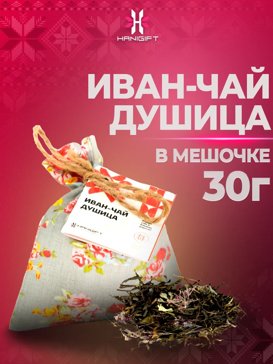 ООО Хани Hanigift Вкуснейший иван-чай с душицей в подарочном мешочке, 30 грамм