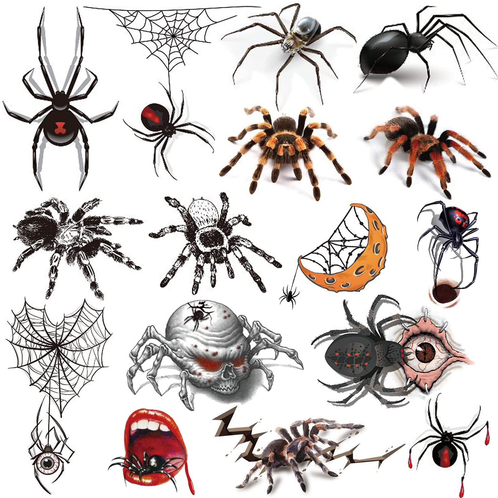 Oottati Small Cute Temporary Tattoo Spider 3D Halloween (Set of 2)