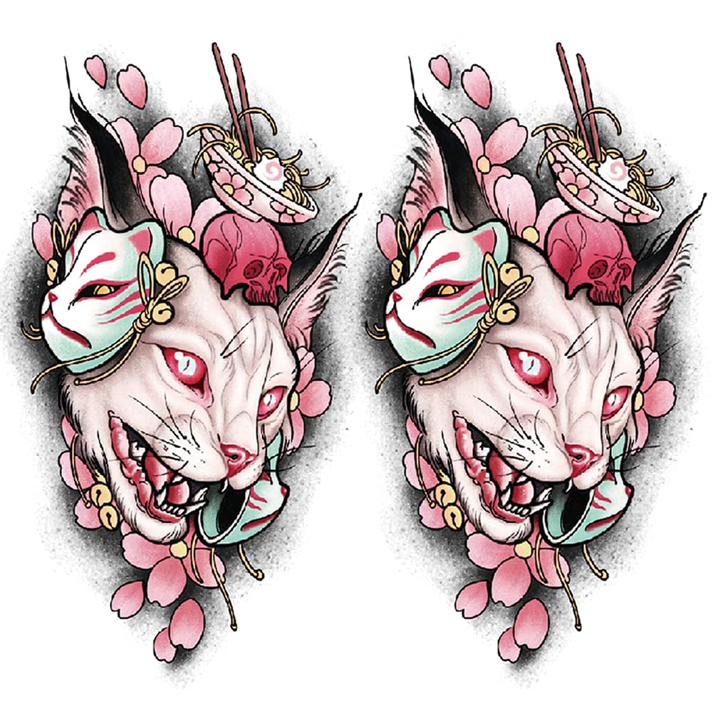 Oottati 2 Sheets Arm Thigh Leg Waterproof Fake Temporary Tattoos Sticker Grey Lion