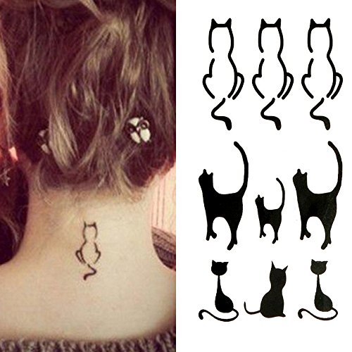 Oottati Small Cute Temporary Tattoo Kitten Cat Neck Hand (Set of 2)