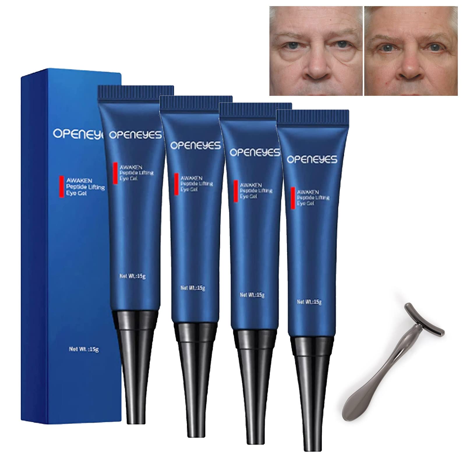 Openeyes Awaken Peptide Lifting Eye Gel, Nordizoe Openeyes, Nordizoe Eye Cream, Openeyes Peptide Eye Gel, Anti Aging Eye Serum for Men Women 1. Reduces the appearance of fine lines and wrinkles 2. Reduces puffiness and dark circles 3. Effective brightening and tightening 4. Plumps and smooths skin 5. Instantly replenishing and calming 6. Repairing and moisturizing at the same time 7. Produce collagen 5 times more than similar products 8. Net content: 15g (g ml) How to use 1. Apply to the clean and dry under-eye area. Use it daily for the best result. 2. Gently pat the remaining cream into the skin. For external use only. Package Included: 1 2 3 4 5 Pcs Openeyes Awaken Peptide Lifting Eye Gel 1 Eye Cream StickSuitable for All Skin Types Our nordizoe eye cream is made of 100 natural ingredients that make up this serum. Whether you are normal, oily, dry or even skin, all are safe to use around the eyes. The natural anti-wrinkle eye cream absorbs easily into your under-eye skin. Fast Absorption This open eyes peptide lifting eye gel is designed to be quickly absorbed by the periocular area to create a more effective and protective moisture barrier while naturally stimulating the production of collagen and elastin in the skin to keep your skin beautiful and fresh all day long. Effective Anti-Aging Unprecedented purity up to 98 , directly touches and affects the skin, giving the skin a younger look and feel. Effectively prevents, stops and reverses these signs of aging. It can help give the skin a plump, healed and hydrated appearance, with improved elasticity. Reduce Fine Lines Openeyes Wake Peptide Lifting Eye Gel can reduce wrinkles and expression lines. It contains caffeine to reduce visible dark circles and puffiness around your eyelids. Leaving behind a fresh, youthful glow and a more revitalized look. Openeyes Awaken Peptide Lifting Eye Gel This eye cream is very soothing and plumps up sunken areas. This helps firm the skin, while diminishing the appearance of fine lines, wrinkles, eyelid puffiness, dullness, and dark spots. Openeyes Awaken Peptide Lifting Eye Gel, Nordizoe Openeyes, Nordizoe Eye Cream, Openeyes Peptide Eye Gel, Anti Aging Eye Serum for Men Women 1. Réduit l'apparence des ridules et des rides 2. Réduit les poches et les cernes 3. Éclaircissement et resserrement efficaces 4. Repulpe et lisse la peau 5. Régénérant et calmant instantanément 6. Réparer et hydrater en même temps 7. Produire du collagène 5 fois plus que des produits similaires 8. Contenu net : 15 g (g ml) Comment utiliser 1. Appliquer sur la zone sous les yeux propre et sèche. Utilisez-le quotidiennement pour le meilleur résultat. 2. Tapotez doucement la crème restante sur la peau. Pour usage externe uniquement. Forfait inclus : 1 2 3 4 5 Pcs Openeyes Awaken Peptide Lifting Eye Gel 1 bâton de crème pour les yeuxConvient à tous les types de peau Notre crème pour les yeux nordizoe est composée à 100 d'ingrédients naturels qui composent ce sérum. Que vous soyez une peau normale, grasse, sèche ou même, tout est sûr à utiliser autour des yeux. La crème anti-rides naturelle pour les yeux absorbe facilement dans votre peau sous les yeux. Absorption rapide Ce gel pour les yeux liftant peptide yeux ouverts est conçu pour être rapidement absorbé par la région périoculaire afin de créer une barrière d'humidité plus efficace et protectrice tout en stimulant naturellement la production de collagène et d'élastine dans la peau pour garder votre peau belle frais toute la journée. Anti-âge efficace Pureté sans précédent jusqu'à 98 , touche et affecte directement la peau, donnant à la peau un aspect et une sensation plus jeunes. Prévient, arrête et inverse efficacement ces signes du vieillissement. Il peut contribuer à donner à la peau une apparence repulpée, cicatrisée et hydratée, avec une élasticité améliorée. Réduire les ridules Le gel pour les yeux liftant aux peptides Openeyes Wake peut réduire les rides et les rides d'expression. Il contient de la caféine pour réduire les cernes et les poches visibles autour de vos paupières. Laissant derrière lui un éclat frais et jeune et un look plus revitalisé. Gel pour les yeux liftant aux peptides Openeyes Awaken Cette crème pour les yeux est très apaisante et repulpe les zones enfoncées. Cela aide à raffermir la peau, tout en diminuant l'apparence des ridules, des rides, des poches des paupières, de la matité et des taches brunes.