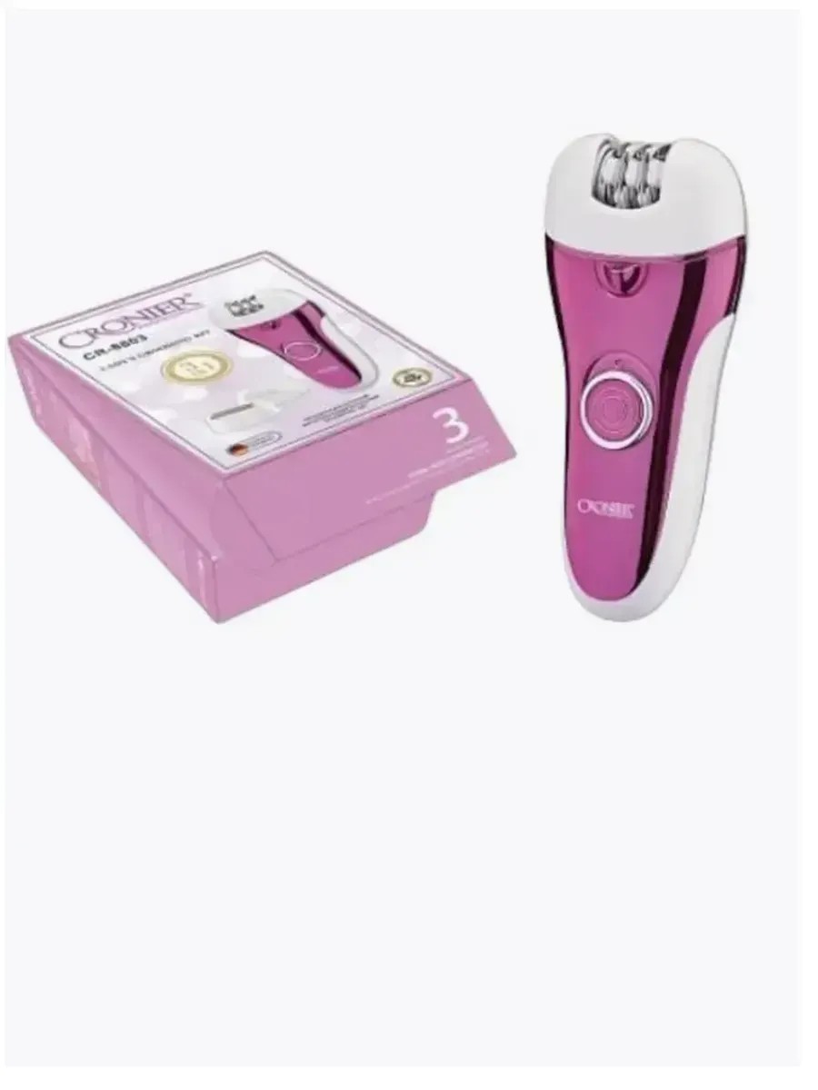The lightweight and compact Cronier 3-in-1 women's epilator (electric epilator, depilatory razor, foot pumice stone) model CR-8803 will leave your skin perfectly smooth without irritation. The Cronier 8803 women's epilator with attachments has proven itself as a worthy alternative to brands such as the Philips women's epilator, Braun women's epilator, and Rowenta women's epilator. Its contactless action eliminates the risk of cuts and reduces irritation.