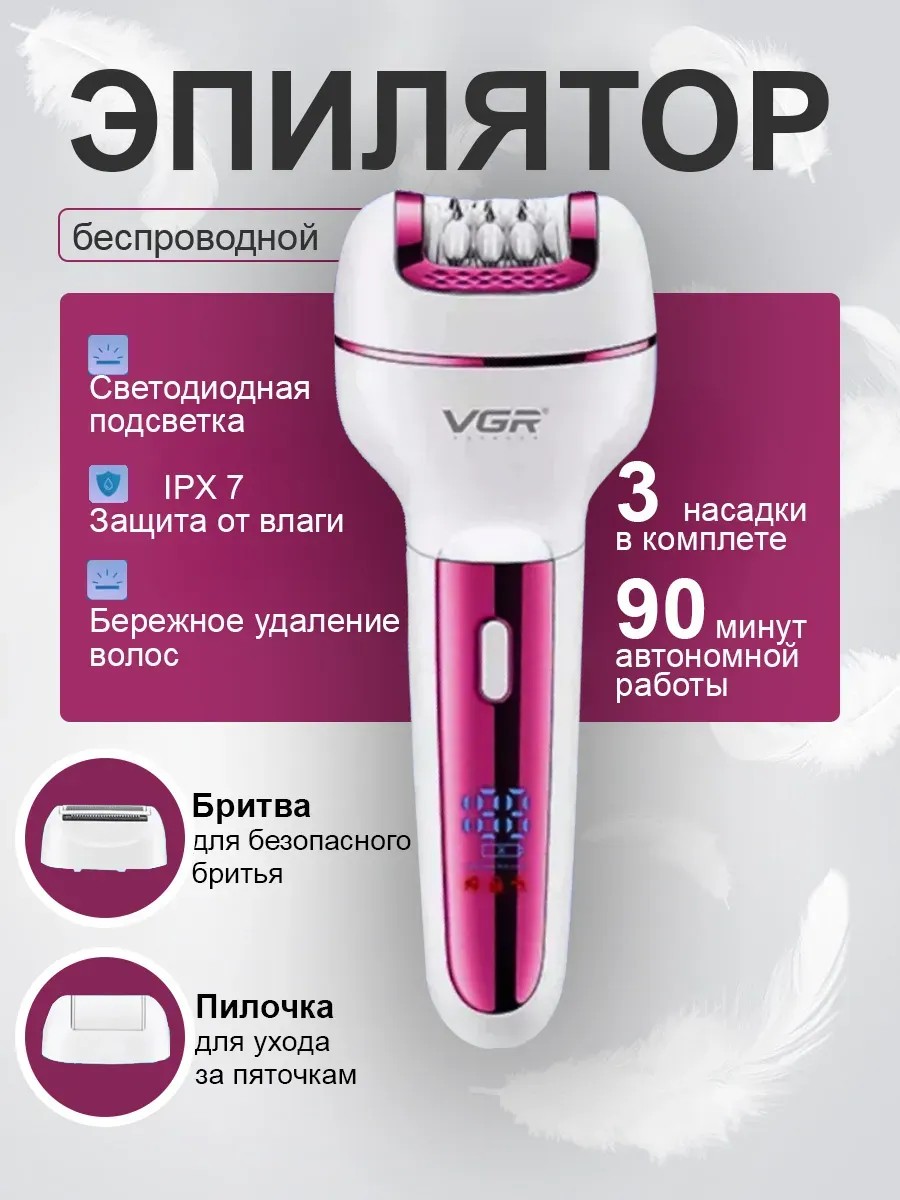 | Доп. опции эпилятора | Насадка для пилинга; беспроводной; встроенный аккумулятор |