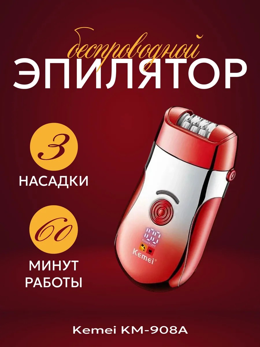 Мультифункциональный эпилятор 3в1 KM-908A от Kemei — это роскошное и эффективное средство для удаления нежелательных волос. Оснащен 18 пинцетами, он легко справляется с самыми короткими волосками, не раздражая кожу. Водонепроницаемый дизайн IPX6 позволяет использовать его в душе, добавляя комфорт и удобство. В комплект входят: насадка-эпилятор, шлифовальная головка, бритвенная насадка и другие аксессуары, включая чехол для хранения. Работает до 90 минут от одного заряда, что идеально для длительных процедур. Стильный красный цвет придаст вашему уходу за собой нотку роскоши.