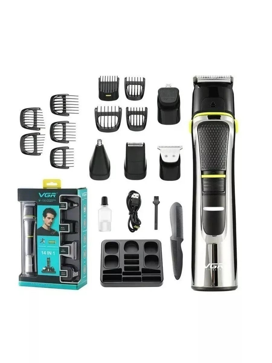 Многофункциональная машинка VGR V-100 для стрижки волос. Сочетает в себе несколько устройств.Машинка для стрижки волос работает на аккумуляторе. Он заряжается от USB в течение 2 часов до полного заряда. Одного заряда триммера хватает на 60 минут беспрерывной работы. Кабель USB идет в комплекте.Несмотря на большую мощность мотора, работает машинка для волос с очень низким уровнем шума. Многофункциональное устройство VGR V-100 - профессиональный набор для стайлинга. С помощью него вы можете постричь волосы, сделать окантовку, придать форму бороде. А также удалить волосы из носа и ушей.- Длительная работа- Ножи из нержавеющей стали- Индикатор зарядки аккумулятора- Аккумулятор: литиевая батарея 600 mAh- Быстрая зарядка- Время зарядки: 2 часа- Время работы: 60 минут- Ширина лезвия: 40 мм- Работа: без шнура- Малый вес и габариты- Легко ложится даже в небольшую ладонь- Долговечный и высокопроизводительный- Минимальная высота среза 0.8 мм- Мощность 5Вт.