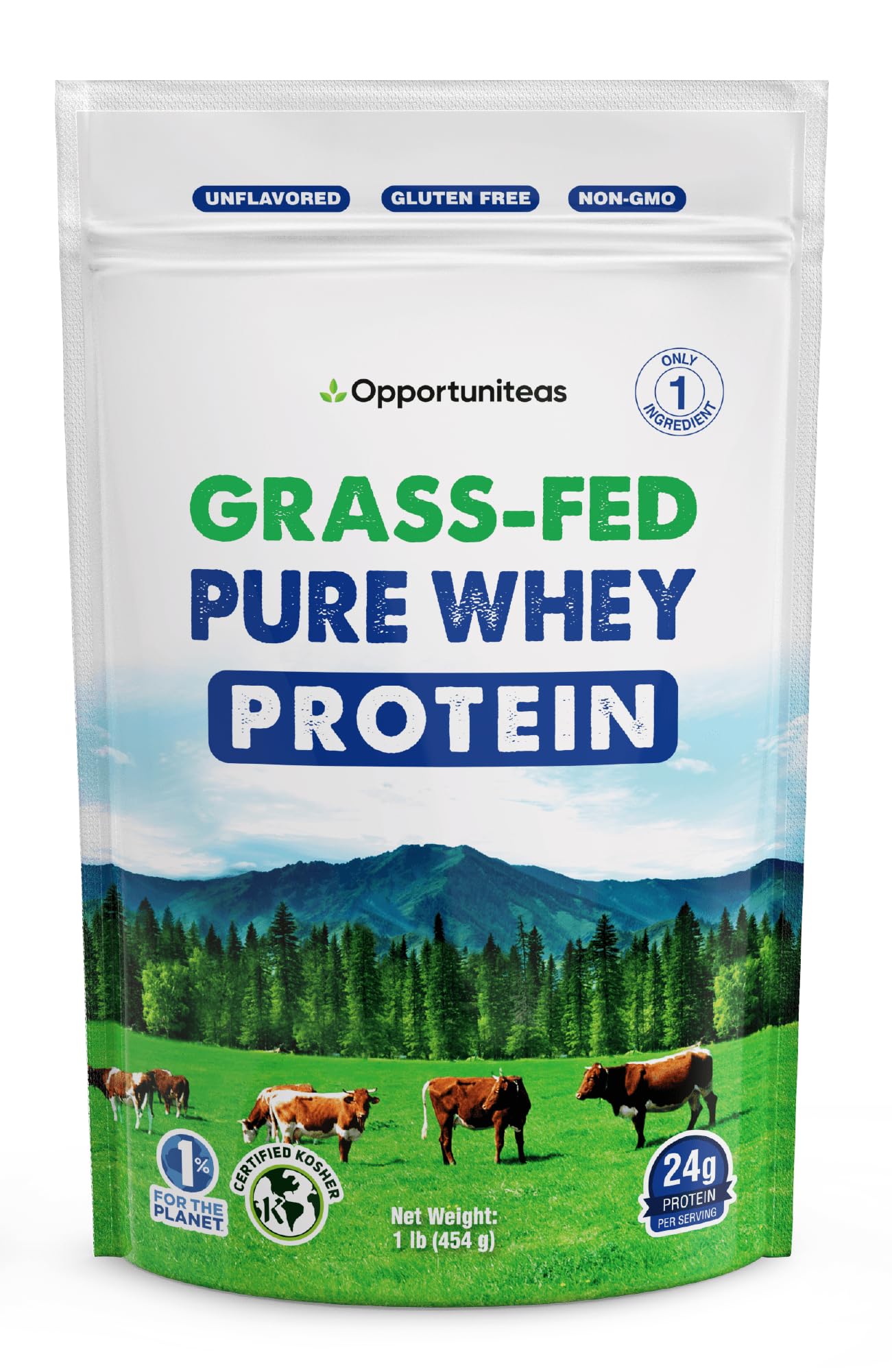 Opportuniteas Grass Fed Whey Protein Powder Concentrate - 1 Ingredient - Pure Protein Supplement for Drink Smoothie Shake Cooking & Baking - Non GMO Hormone Free & Gluten Free - 1 Pound Unflavored 1 Pound (Pack of 1)