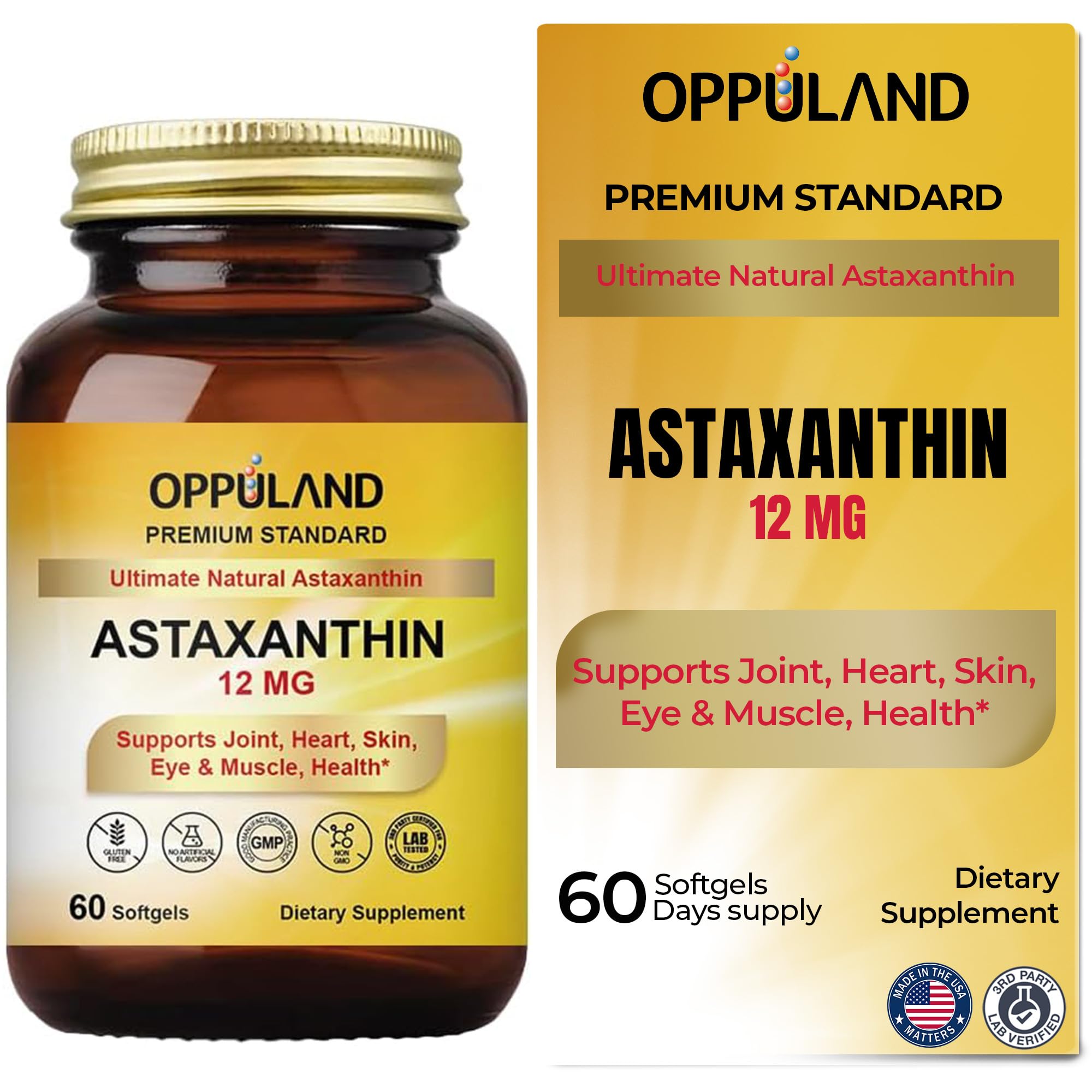 oppuland Astaxanthin 12mg | 60 Softgels | Supports Joint Heart Skin and Muscle Health