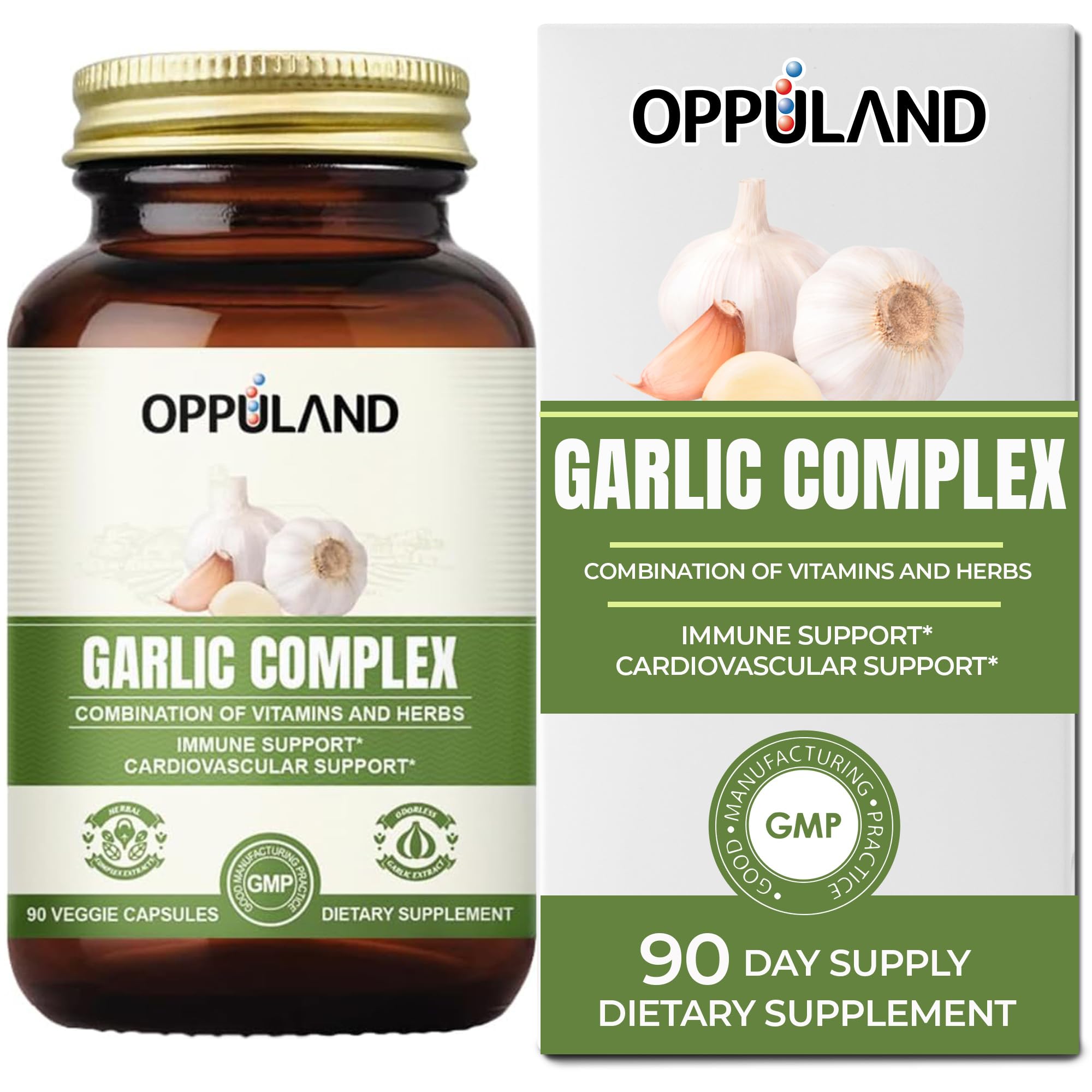 oppuland Garlic Complex - Odorless Garlic Pills with Oregano Olive Leaf Nigella Seed Vitamin D Zinc - Herbal Supplement - Cardiovascular Immune System & Natural Wellness Support - 30 Day Supply
