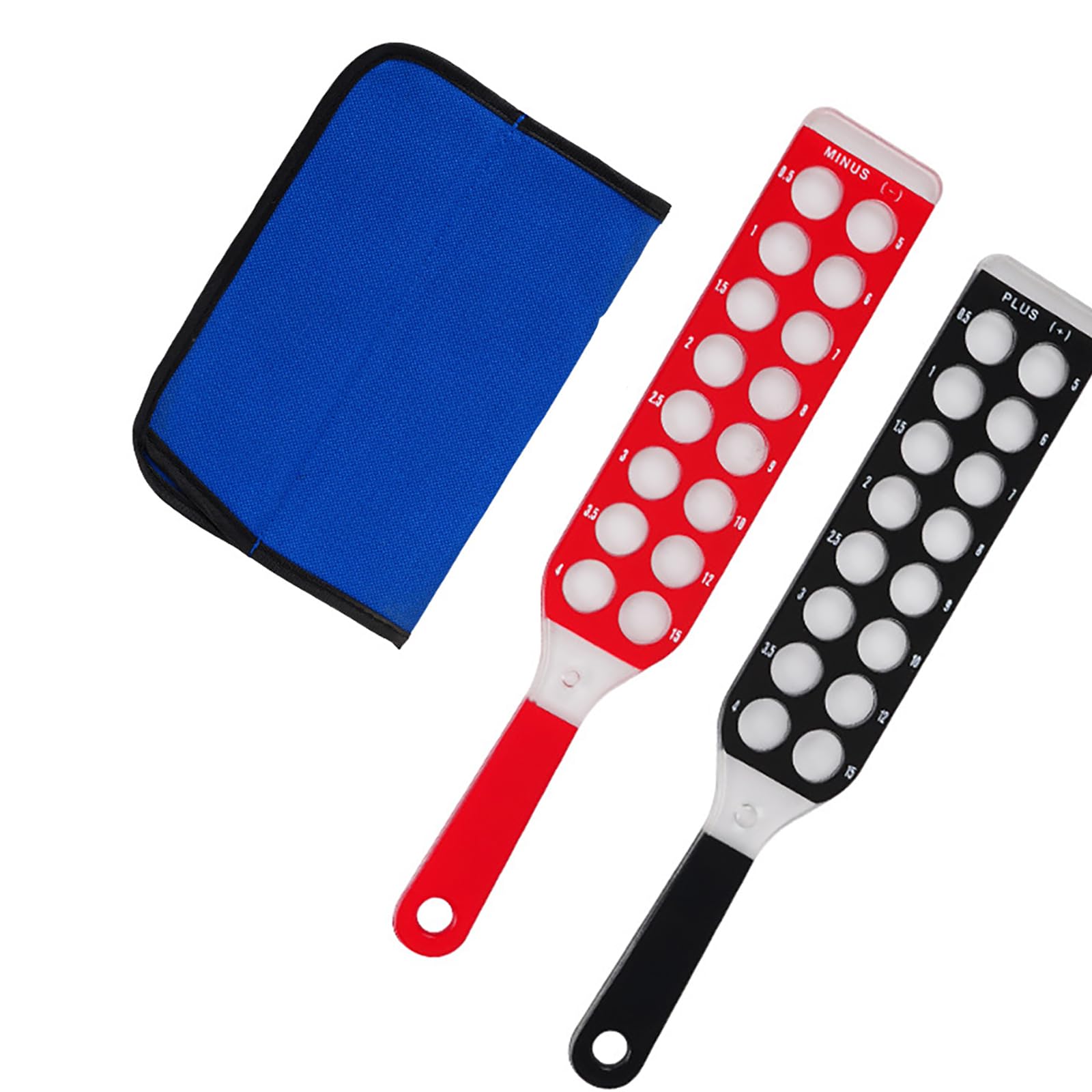 Optical Retinoscopy Rack Lens Set Retinoscopy Bars with a Nylon Pocket Red for Myopia Black for Hyperopia for The Quick Examination of Diopter of Spectacles 2 Bars 32 Lenses