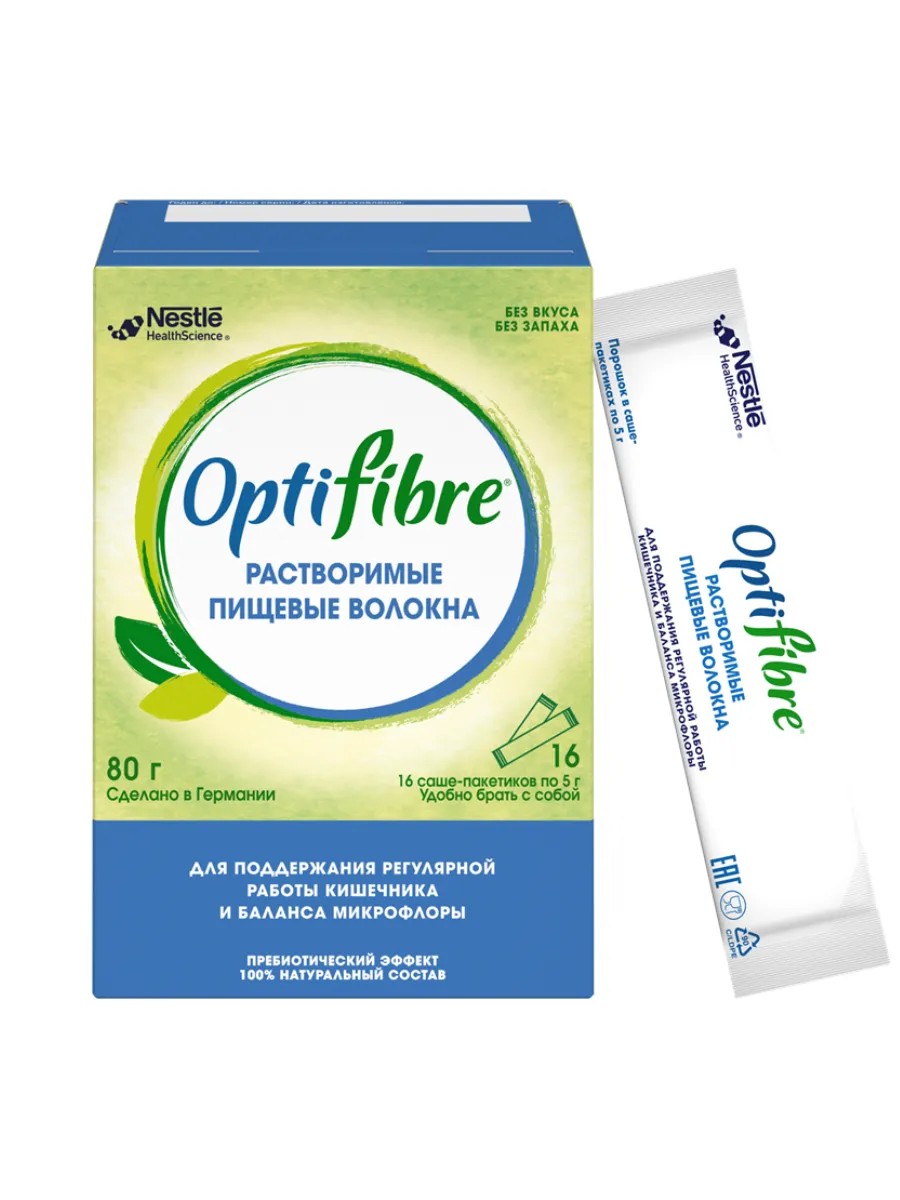 Оптифайбер - это прорыв в заботе о здоровье кишечника. Этот продукт имеет форму порошка, который находится в пакетиках по 5 грамм. Препарат состоит из растворимых и нерастворимых волокон, которые необходимы для правильной и здоровой работы кишечника. Optifiber предотвращает запоры, способствует выводу токсинов из организма, питает микрофлору кишечника и укрепляет иммунитет. Принимать Optifiber очень просто: добавьте один пакет в свой обычный напиток и выпейте. В продукт не добавлены консерванты и искусственные красители, что делает его абсолютно безопасным для здоровья.