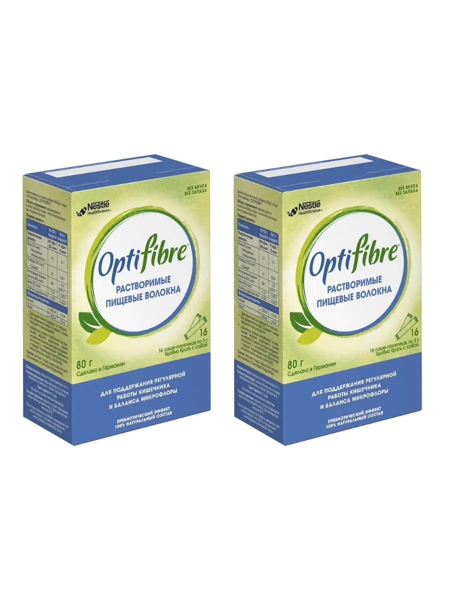 OptiFibre Оптифайбер растворимые пищевые волокна, 16 саше по 5г х 2 уп