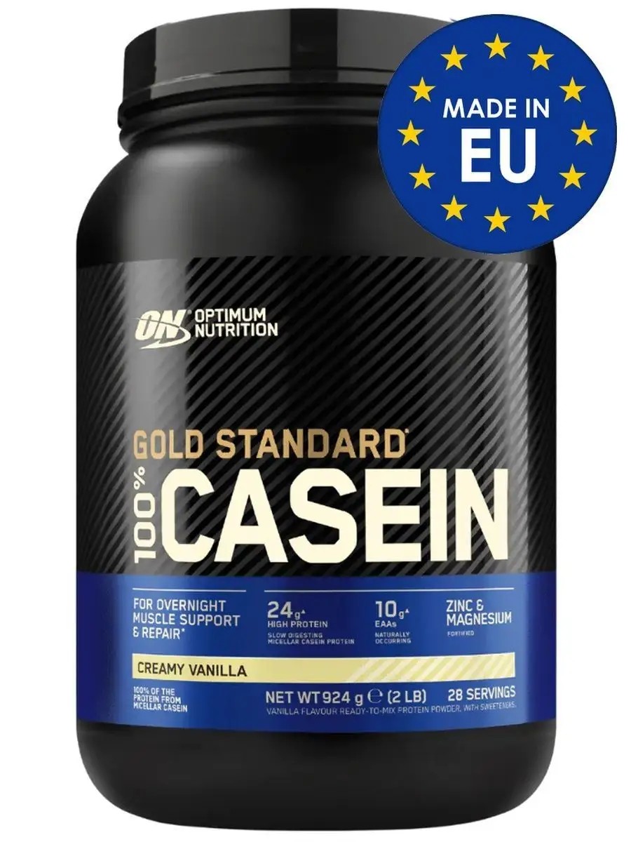 ATTENTION! EUROPEAN VERSION! Gold Standard 100% Casein by Optimum Nutrition is a reference product for maintaining slow digestion and better absorption of protein and amino acids. So, milk consists of two types of protein: casein (80%) and whey protein (20%). Micellar casein is the most natural form of casein protein, it is grouped into tiny balls (micelles), which allows it to thicken in the stomach during digestion, and which, in turn, can slow down absorption. Key properties: increase in muscle mass; decrease in fat mass; recovery after physical exertion; strengthening and health of teeth; suitable for baking (does not lose its properties even at high temperatures). Contains: 24 g. anti-catabolic micellar casein; about 5 g. BCAA; about 5 g.; about 5 g. glutamine and glutamic acid of natural origin. Premium micellar casein GOLD STANDARD 100% CASEIN provides better and slower protein absorption before and after training to help restore strength and muscle. Directions: Mix one scoop of powder with 300-350 ml of cold water or milk using a shaker. For best results, consume the protein shake 30-60 minutes after training, before bed, or as a snack at any time convenient for you. Consume enough protein to meet your daily protein requirements by combining high-protein foods and protein supplements throughout the day as part of a balanced diet. Strawberry protein, vanilla protein, chocolate protein. Health, sports, and beauty chain "Athletic Food."