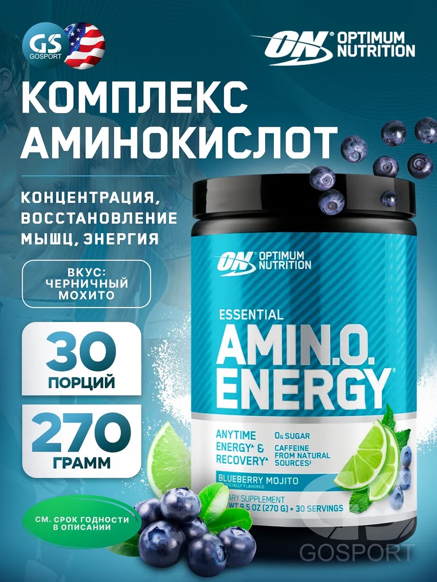 Годен до 21.10.2026. Аминокислоты Essential Amino Energy 270 г, Черничный Мохито. Аминокислотный комплекс Essential Amino Energy, сочетает в себе оптимальное соотношение быстро абсорбирующихся аминокислот в свободной форме с природными антидепрессантами и компонентами, выступающими в качестве NO-бустеров (усилителей выработки оксида азота). Благодаря такому насыщенному компонентному составу комплекс аминокислот Essential Amino Energy в значительной степени улучшает выносливость и восстановление. Благодаря аминокислотному составу, состоящему в основном из незаменимых аминокислот (EAA), Amino Energy представляет собой отличный анаболический комплекс. Незаменимые аминокислоты способствуют развитию, нормализации и поддержанию процессов, связанных с синтезом белка, а также играют важную роль в восстановлении организма после интенсивных тренировок и нагрузок. Плюс ко всему, такие аминокислоты как BCAA и аргинин, также включенные в состав продукта, помогут вам эффективно нарастить мышечную массу и в значительной степени усилить эффект пампинга в тренировочный и посттренировочный цикл. BCAA – это еще и дополнительный источник мышечной энергии. Зелёный чай (EGCG) и экстракт зелёного кофе: сильная антиоксидантная поддержка; благодаря гликогену усиливаются процессы сжигания жира и преобразования жировых клеток в энергию. Цитруллин (микронизированный): играет важную роль в выработке энергии и борется с усталостью. Бета-аланин (микронизированный): путём очистки организма от аммиака, повышает толерантность к интенсивным физическим нагрузкам. Каждая порция Essential Amino Energy содержит всего лишь 10 калорий, исключая необходимость пересмотра основной диеты с включением данного продукта в свой рацион питания. Аминокислоты Essential Amino Energy могут стать полезным компонентом спортивного питания для спортсменов и людей, занимающихся спортом или фитнесом. Продукт подходит для мужчин и женщин, заботящихся о своем здоровье и красоте. Рекомендации по приему пищевой добавки: принимайте 2 мерных ложки (9 г) с 200 мл воды за 20 мин до тренировки, в течение дня – дополнительно 1–2 порции.