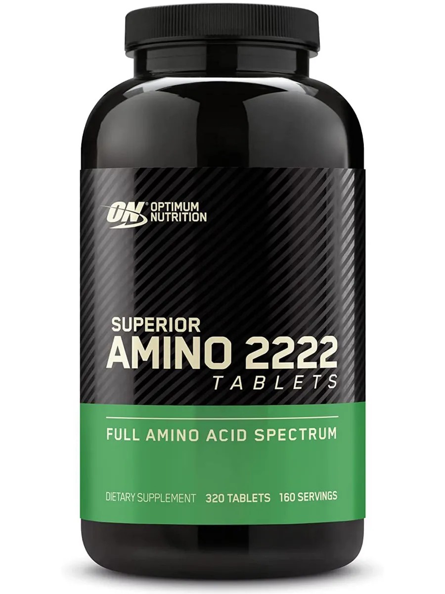 An amino acid complex from Optimum Nutrition that promotes overall health. Each serving contains 2 grams of replaceable, essential, and conditionally essential amino acids. This supplement increases endurance and performance, and preserves muscle tissue during intense exercise. Optimum Nutrition Superior Amino is recommended as a source of essential amino acids. This supplement is made with soy protein isolate and whey protein concentrate. It contains 20 amino acids from different groups, and 500 mg of BCAAs per serving. How Optimum Nutrition Superior Amino works: It participates in protein synthesis—an important component of muscle tissue, hair, skin, tendons, etc.; produces important substances necessary for proper bodily function, such as antibodies, enzymes, hormones, and hemoglobin; accelerates metabolism, helps burn fat; strengthens the immune system, and increases the body's resistance to viruses and bacteria. Taking this complex is recommended for protecting and strengthening the body. Take 2 tablets twice daily between meals. Amount Per 2 Tablet Serving: Calories 20, Total Carbohydrate 3g (Total Sugars 2g), Protein 2g, Sodium 40mg, Amino 222 Blend 5.3g (Whey Powder, Whey Protein Concentrate, Soy Protein, Micronized Amino Acid Blend (L-Leucine, L-Isoleucine, L-Valine, L-Glutamine, L-Arginine), Hydrolyzed Whey Protein, Enzyme Complex (Amylase, Protease, Cellulase, Lactase, Lipase)). Amino Acid Profile: Essential Amino Acids (EAAs) 984mg (Histidine, Isoleucine, Leucine, Lysine, Methionine, Phenylalanine, Threonine, Tryptophan, Valine). Conditionally essential amino acids (CAAs) - 410 mg (arginine, cysteine, tyrosine, proline, glutamine and glycine). Nonessential amino acids (NAAs) - 828 mg (alanine, serine, asparagine, aspartic acid, glutamic acid). Other ingredients: sodium croscarmellose, stearic acid, silicon dioxide, hydroxypropyl methylcellulose, polydextrose, sunflower and/or soy lecithin, medium-chain triglycerides. Contains: milk and soy. Network of stores for health, sports and beauty "A-Food".
