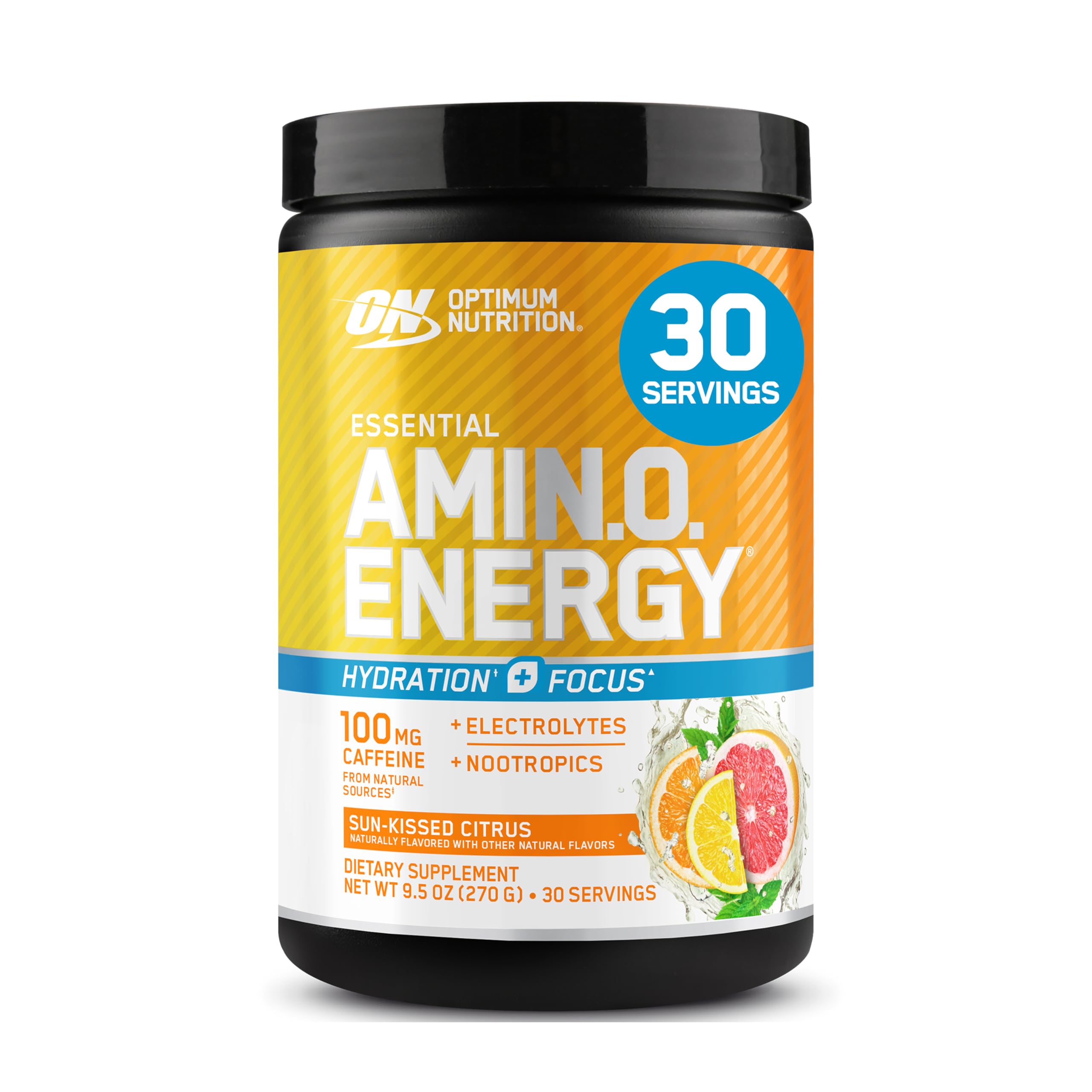 OPTIMUM NUTRITION AMIN.O. ENERGY HYDRATION? FOCUS? delivers the latest innovation to your fitness regimen. Dial up your energy, zero in on your workout, and get hydration support with our enhanced 3-in-1 formula with caffeine from natural sources, electrolytes, and nootropics in every serving. Developed for anyone who wants to enhance their performance nutrition regimen, it can be used any time of day when energy and focus are needed - before or during sports, workouts, and other activities where you want an edge. Every serving is the result of tireless research and development by experts in performance nutrition. Packed with top-quality ingredients from thoroughly and carefully selected sources, it's precisely what you've come to expect from OPTIMUM NUTRITION – The World's 1 Sports Nutrition Brand.