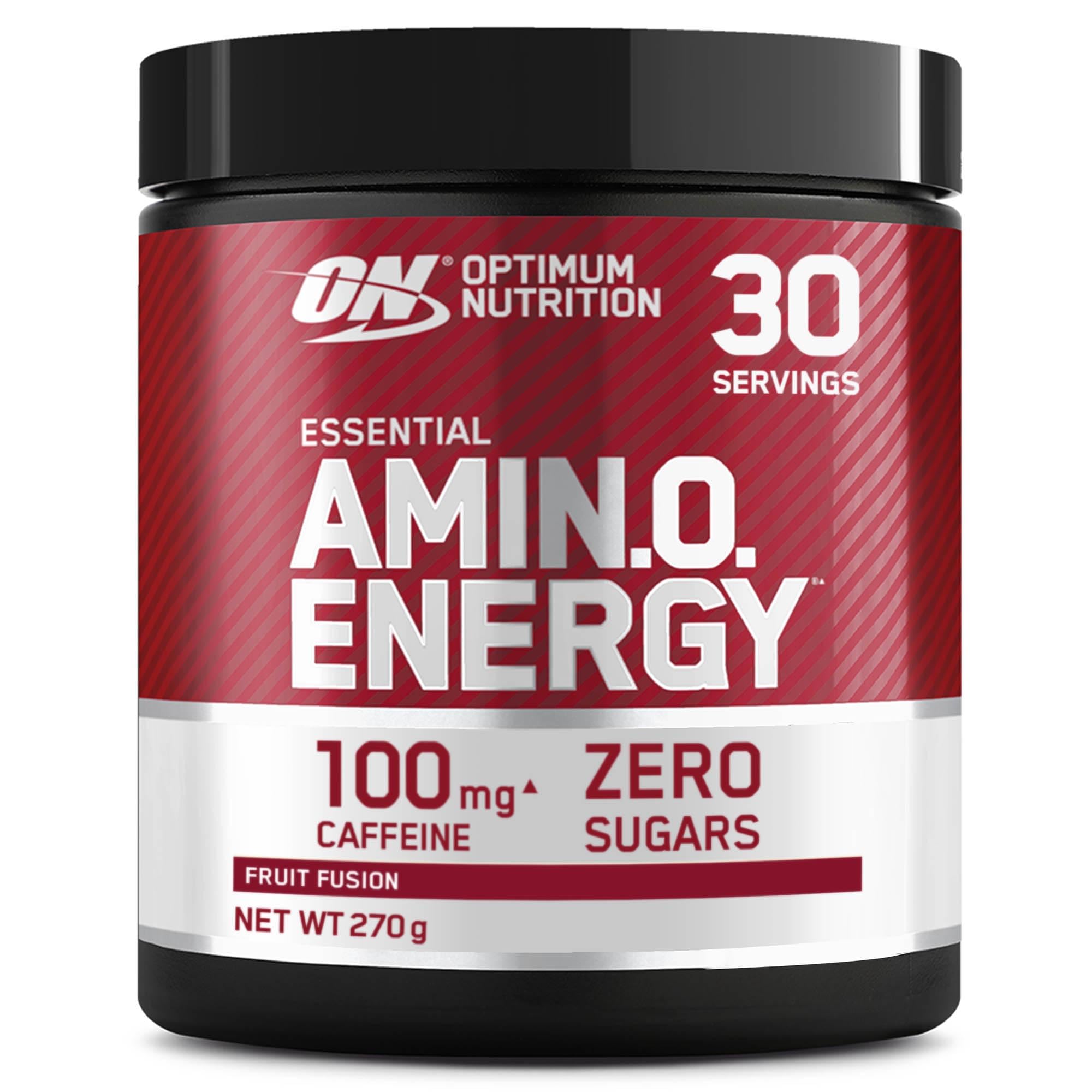 Discover Optimum Nutrition Essential Amin.O. Energy, a ready-to-mix powdered amino acid dietary supplement designed to boost your energy and concentration before your workout or throughout the day. ON amino acid supplements are scientifically proven to support your energy needs and training long-term. This pre-workout powder contains 5g of amino acids per serving (such as L-Glutamine, L-Leucine, L-Arginine and BCAAs, among others) and supports your daily amino acid intake. These delicious sports drinks will help you achieve your goals. This product contains green tea and green coffee extracts, providing you with 100 mg of naturally occurring caffeine, helping to increase your alertness and concentration. ON sports drinks are also a source of vitamin C, which contributes to the normal functioning of energy metabolism and the immune system. In addition, its low calorie content and absence of sugar make it a healthy alternative to drinks such as soda and coffee. Amino Energy dietary supplement is suitable for everyone: from those who are just starting to lead a healthier lifestyle to athletes, students, professionals and sports enthusiasts. AminO Energy from Optimum Nutrition is a stimulant with an unbeatable quality price ratio that can be consumed anytime and anywhere: at home, on the go or at the gym. Six different flavors are offered to you: Fruit Fusion, Lemon - Lime, Orange, Pineapple, Strawberry-Lime, or Watermelon. Simply add 2 level scoops (9 g) to 330 ml of cold water and mix before consuming. INGREDIENTS EN: INGREDIENTS: Blend of amino acids (L-glutamine, L-leucine, taurine, L-arginine, L-isoleucine, L-valine, beta-alanine, L-tyrosine, L-histidine, L-lysine hydrochloride, emulsifier: sunflower lecithin), acidifiers (citric acid, malic acid, L( )-tartaric acid), flavor, colorings (beet red, curcumin, beta-carotene), inulin, sweeteners (sucralose, acesulfame-K), thickeners (sodium carboxymethylcellulose, xanthan gum, carrageenan), anti-caking agents (silicon dioxide, calcium silicate), green tea extract (Camellia sinensis, leaf), natural caffeine, L-ascorbic acid, green coffee extract (Coffea arabica L., fruit).Vitamin C contributes to normal energy-yielding metabolism. Caffeine helps increase alertness and concentration. Source: COMMISSION REGULATION (EU) No 432 2012 of 16 May 2012 EFSA Journal 2011 9(4):2054 24. Sports drink in 6 delicious flavors: you won't have to sacrifice taste to get the boost you need. Low-calorie, sugar-free food supplement designed by ON for people leading an active lifestyle to improve their diet and overall nutrition. Pre-workout powder designed for sports enthusiasts and professional athletes to support their training program. Contains 5g of amino acids per serving, including BCAAs, L-Glutamine and L-Leucine, plus 100g of natural caffeine and vitamin C to help you REFRESH AND FOCUS . Caffeinated energy drink powder ready to mix with water as an alternative to soft drinks, flavored waters, coffee and teas. Découvrez Optimum Nutrition Essential Amin.O. Energy, un complément alimentaire composé d'acides aminés en poudre prêt à mélanger, conçu pour stimuler votre énergie et votre concentration avant votre entraînement ou tout au long de la journée. Il est scientifiquement prouvé que les compléments d'acides aminés ON soutiennent vos besoins énergétiques et votre entraînement à long terme. Ce pré-entraînement en poudre contient 5 g d'acides aminés par portion (tels que la L-Glutamine, la L-Leucine, la L-Arginine et les BCAA, entre autres) et soutient votre apport quotidien en acides aminés. Ces délicieuses boissons sportives vous aideront à atteindre vos objectifs. Ce produit contient des extraits de thé vert et de café vert, vous apportant 100 mg de caféine d'origine naturelle, permettant ainsi d'accroitre votre vigilance et votre concentration. Les boissons pour sportifs ON sont également source de vitamine C, qui contribue au fonctionnement normal du métabolisme énergétique et du système immunitaire. De plus, sa faible teneur en calories et son absence de sucre en font une alternative saine aux boissons comme les sodas et le café. Le complément alimentaire Amino Energy convient à tout le monde : de ceux qui commencent tout juste à mener un mode de vie plus sain aux athlètes, étudiants, professionnels et amateurs de sport. AminO Energy d'Optimum Nutrition est un stimulant au rapport qualité prix imbattable pouvant être consommé à tout moment et n'importe où : chez vous, en déplacement ou à la salle de sport. Six goûts différents vous sont proposés : Fruit Fusion, Citron - Citron vert, Orange, Ananas, Fraise-Citron vert, ou Pastèque. Il suffit d'en ajouter 2 dosettes rases (9 g) dans 330 ml d'eau froide et de mélanger avant de consommer. INGRÉDIENTS FR: INGRÉDIENTS : Mélange d'acides aminés (L-glutamine, L-leucine, taurine, L-arginine, L-isoleucine, L-valine, bêta-alanine, L-tyrosine, L-histidine, chlorhydrate de L-lysine, émulsifiant : lécithine de tournesol), acidifiants (acide citrique, acide malique, acide L( )-tartrique), arôme, colorants (rouge de betterave, curcumine, bêta-carotène), inuline, édulcorants (sucralose, acésulfame-K), épaississants (carboxyméthylcellulose de sodium, gomme xanthane, carraghénanes), antiagglomérants (dioxyde de silicium, silicate de calcium), extrait de thé vert (Camellia sinensis, feuille), caféine naturelle, acide L-ascorbique, extrait de café vert (Coffea arabica L., fruit).La vitamine C contribue au fonctionnement normal du métabolisme énergétique. La caféine aide à accroitre la vigilance et la concentration. Source : RÈGLEMENT (UE) No 432 2012 DE LA COMMISSION du 16 mai 2012 EFSA Journal 2011 9(4):2054 24. Boisson pour le sport déclinée en 6 saveurs délicieuses : vous n'aurez pas à sacrifier le goût pour obtenir le coup de fouet dont vous avez besoin. Complément alimentaire hypocalorique sans sucre conçu par ON, pour les personnes menan