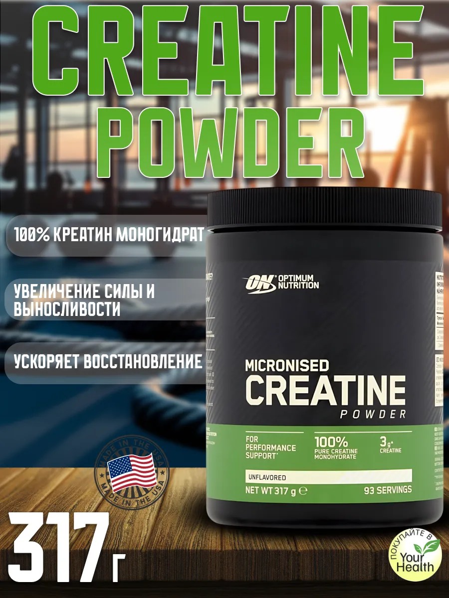 Optimum Nutrition – самый узнаваемый бренд благодаря высокому престижу, репутации и качеству. Его рекомендуют все его пользователи. Creatine Powder – это оригинальная формула, на 99,9% состоящая из моногидрата креатина для увеличения мышечной массы. ON Creatine Powder – источник высококачественного моногидрата креатина с уже хорошо знакомым вам действием: Дает взрывную силу для сверхинтенсивных тренировок. Производится при более высоком pH (с меньшей кислотностью), что повышает мышечную выносливость и предотвращает риск усталости мышц. Увеличивает способность мышц к восстановлению. Ваши мышцы будут быстрее развиваться и расти, станут сильнее, более тонизированными и выносливыми на тренировках. Обладая отличным соотношением качества к цене, Creatine Powder от ON – это порошок без запаха, быстро растворяющийся в воде и не дающий осадка. Идеален в качестве посттренировочного сока. Делайте то, что делает множество спортсменов и культуристов-любителей по всему миру: если вы хотите увеличить силу и выносливость, поднимать бóльшие веса и получать больше результатов, причем по разумной цене, выбирайте Optimum Nutrition Creatine Powder! Рекомендации по употреблению: Смешать одну чайную ложку (приблизительно 5,25 гр.) Creatine Powder с 240 – 355 мл воды или фруктового сока. Для размешивания воспользуйтесь обычной ложкой. В период употребления кретина пейте много воды (как минимум восемь стаканов). Фаза загрузки: В начале приема в течение 4 – 5 дней одну чайную ложку Оптимум нутришен Creatine Powder принимать утром, днем, вечером и еще одну порцию перед сном. Фаза поддержания: Одну чайную ложку Creatine Powder принимать во время приема пищи или непосредственно после тренировки.