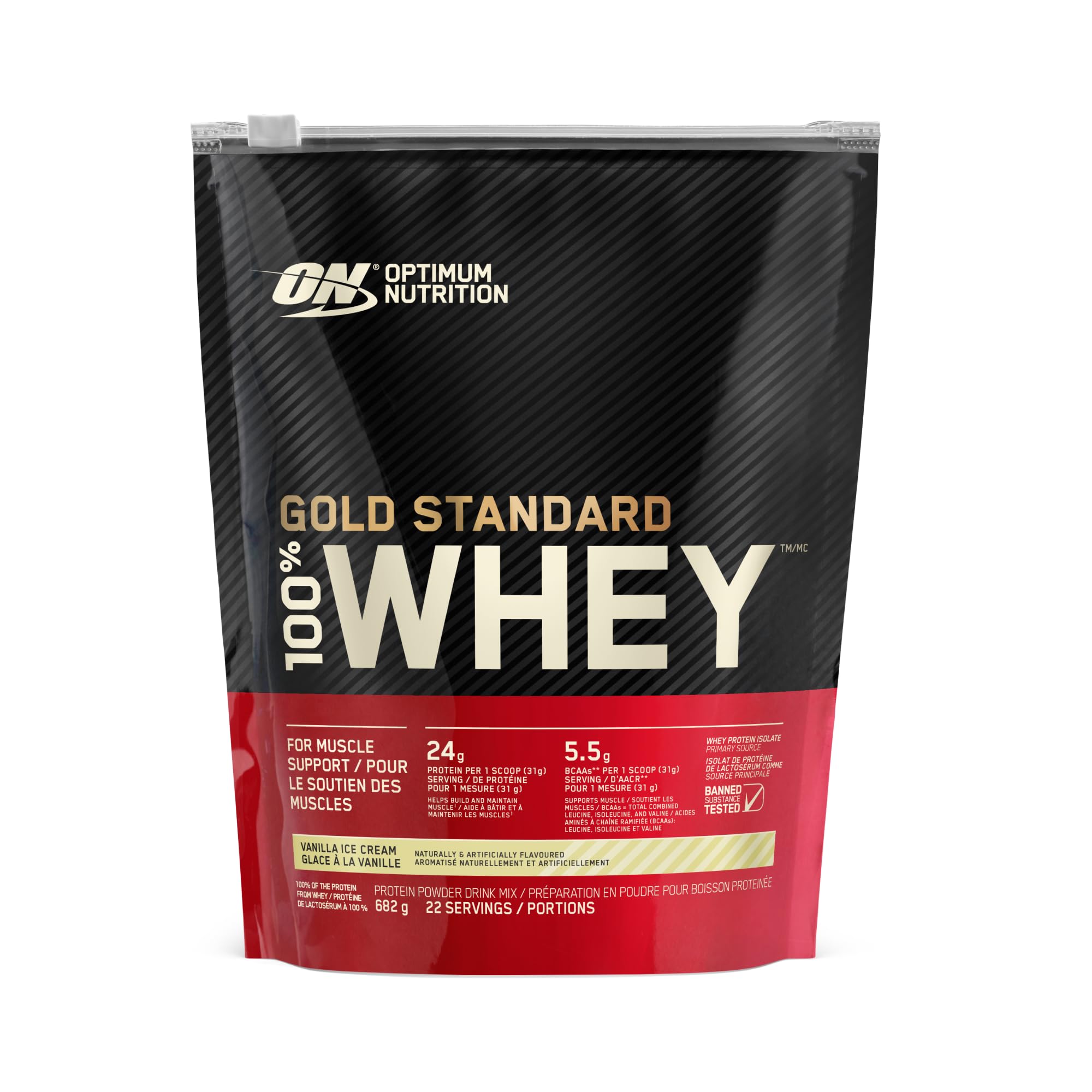 Optimum Nutrition Gold Standard 100 Whey helps you unlock your potential and get more from your workouts. Whey protein isolate is the primary ingredient, with excess carbs and fat 'isolated' out for a total of 24 grams of protein, 5.5g of naturally occurring branched chain amino acids (BCAAs), and 11g of naturally occurring naturally occurring essential amino acids (EAAs) per serving. With a wide range of tempting flavors to choose from, Optimum Nutrition Gold Standard 100 Whey gives you plenty of ways to keep workout recovery interesting.Banned substance tested and the highest quality control measures so you feel comfortable and confident consuming the product. Gold Standard 100 Whey - 24g of protein per serving to help build and maintain muscle when taken over time with regular resistance training.