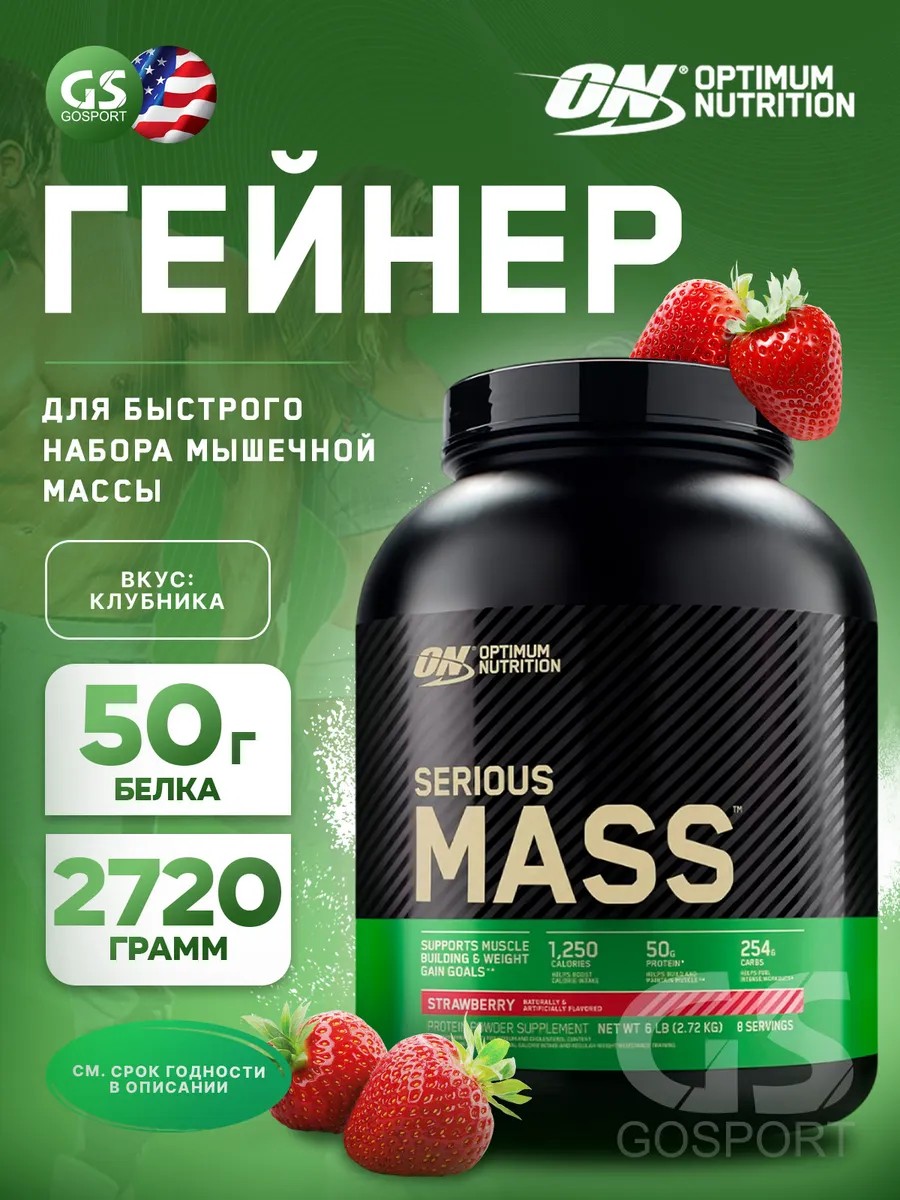 Годен до 23.10.2026. Гейнер Serious Mass 2720 г, Клубника. Гейнер для набора мышечной массы и веса Serious Mass. Этот спортивный продукт станет вашим надежным помощником в достижении ваших фитнес целей. С помощью Serious Mass вы получите необходимое количество протеинов, углеводов, микроэлементов и калорий, что поможет Вам быстро набрать вес. Одной из главных особенностей гейнера Serious Mass является его высокая концентрация белка. Белковая смесь, содержащаяся в этом продукте, позволит вам получить максимальное количество белка, необходимого для наращивания мышц. Белковый смесь, которая входит в состав гейнера Serious Mass, обеспечивает ваш организм аминокислотами, необходимыми для роста мышц и восстановления после тренировок. Гейнер Serious Mass также содержит в себе БЦАА (аминокислоты), которые способствуют более эффективному синтезу белка и ускоряют процесс восстановления мышц. Это позволяет вам тренироваться более интенсивно и получать лучшие результаты. Углеводная смесь обеспечивает немедленное поступление энергии и повышает выносливость во время интенсивных силовых тренировок. Креатин служит источником энергии для работы мышц и помогает распределить энергию. Моногидрат креатина увеличивает силу и выносливость и помогает быстрее набрать мышечную массу. Этот спортпит можно использовать не только для набора веса, но и как дополнительный источник аминокислот BCAA и креатина. Гейнер Serious Mass от Optimum Nutrition является компонентом профессионального спортивного питания для спортсменов и людей, занимающихся спортом или фитнесом. Продукт подходит для мужчин и женщин, заботящихся о своем здоровье и красоте. Рекомендации по приему пищевой добавки: добавляйте из расчета две ложки Serious Mass на 680 мл холодной воды или молока. В течение первой недели можно употреблять только половину порции.