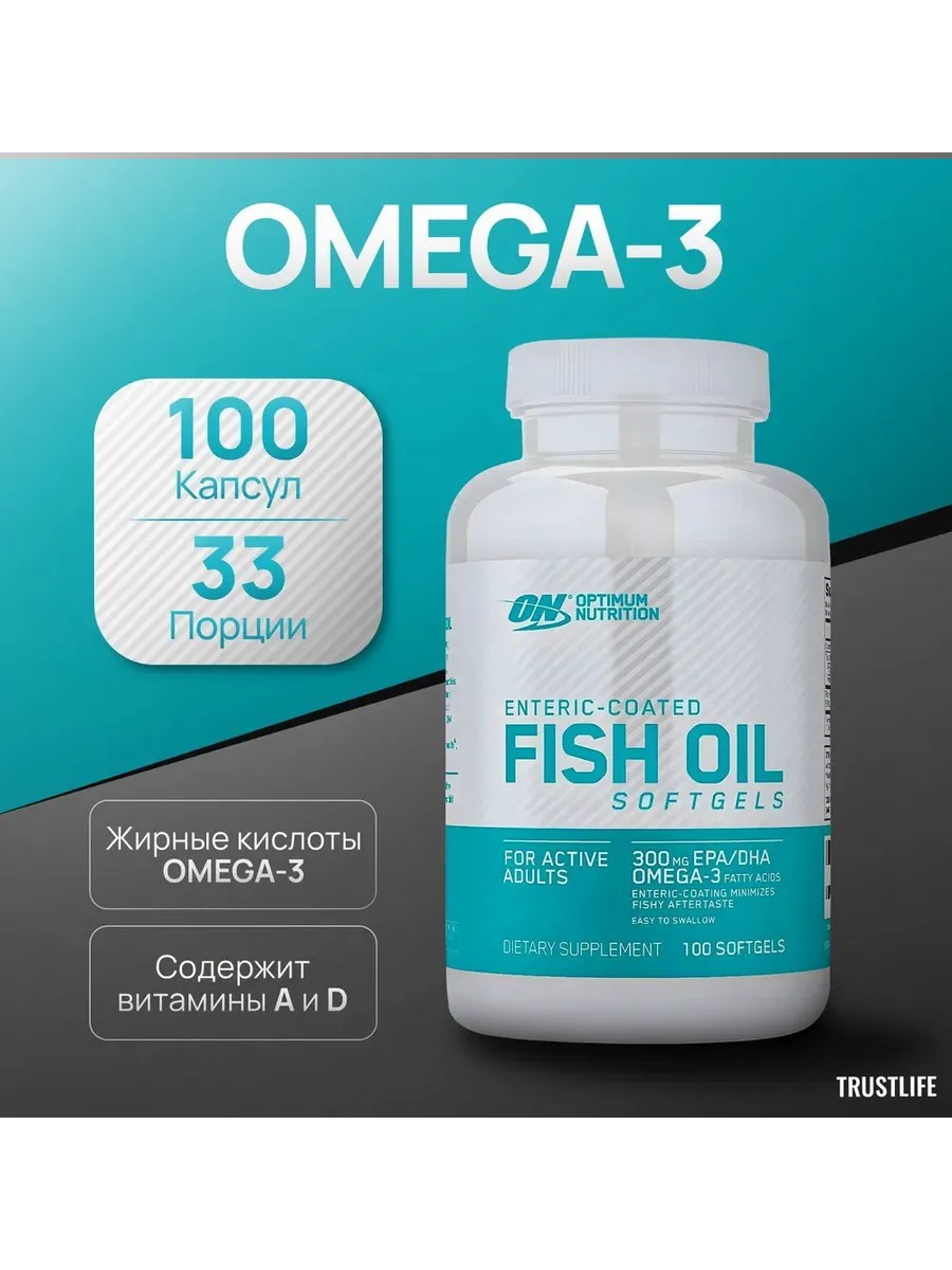 FISH OIL SOFTGELS - это рыбий жир от мирового бренда Optimum Nutrition. Он содержит незаменимые жирные кислоты, которые играют огромную роль в нормальном функционировании нашего организма. Безусловно, мы можем получать эти кислоты, например, употребляю в пищу лосось, но проще и дешевле помочь нашему организму восполнить необходимые кислоты с помощью Fish Oil (не содержит ртуть и полностью очищен от вредных составляющих).