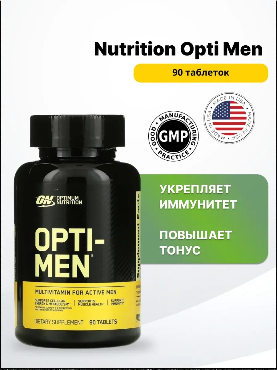 Optimum Nutrition Opti-Men комплекс витаминов и минералов для мужчин. Продукт состоит из 4-х смесей, снабжающих организм 75 необходимыми элементами. В каждой порции содержится аминокислотный комплекс, антиоксиданты, минералы и витамины, растительные компоненты, необходимые для нормальной работы организма. Комплекс разработан специально для мужчин, которые ведут активный образ жизни, занимаются пауэрлифтингом, бодибилдингом и другими видами спорта.Органические соединения, содержащиеся в добавке, нормализуют ход важных обменных процессов, позволяют снизить вес, набрать мышечную массу, ускорить реакции биохимического типа. Optimum Nutrition Opti-Men оказывает общеукрепляющий эффект, усиливает иммунный барьер, стимулирует умственную, физическую и сексуальную активность.